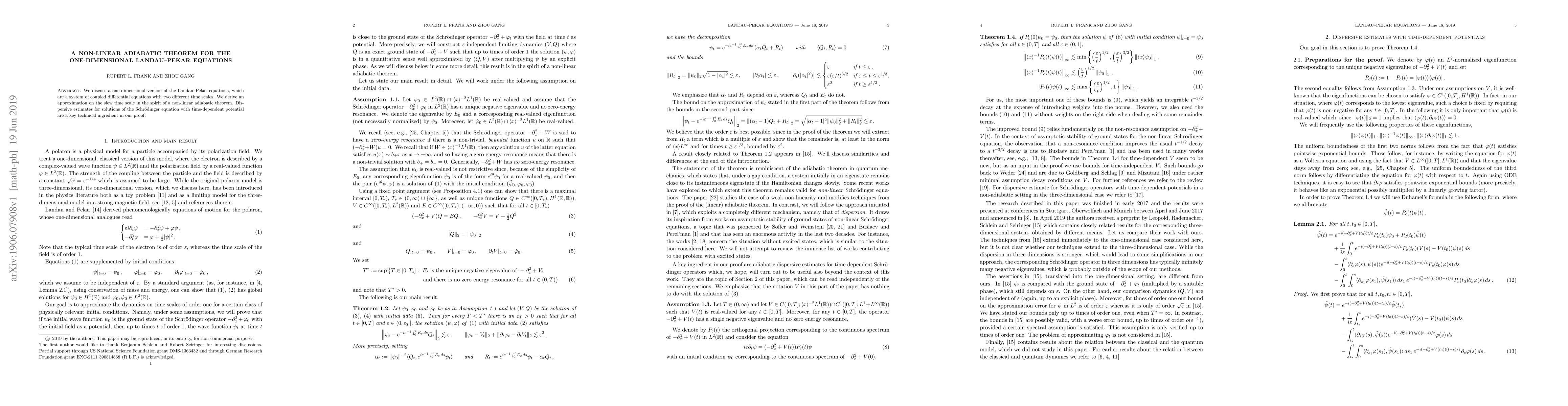 This paper derives an approximation for a one-dimensional version of the Landau-Pekar equations, focusing on the slow time scale using a non-linear adiabatic theorem. Dispersive estimates for solutions of the Schrödinger equation with time-dependent potentials are crucial for the proof.