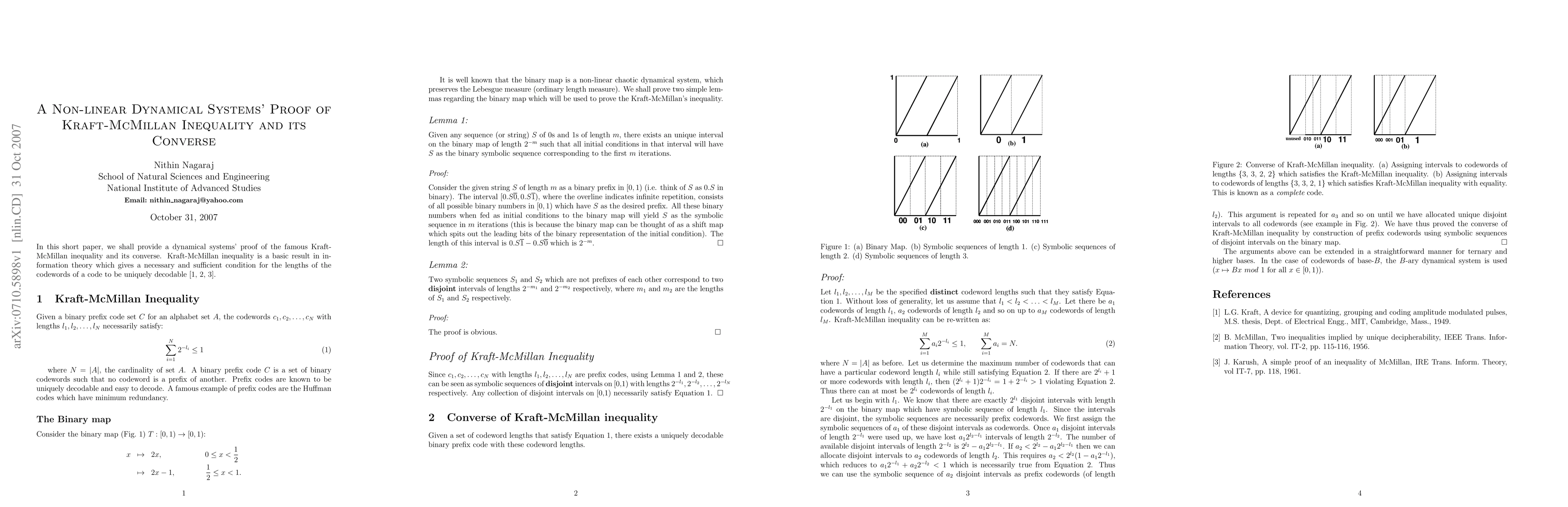 This paper presents a novel proof of the Kraft-McMillan inequality using non-linear dynamical systems, establishing a necessary and sufficient condition for uniquely decodable codewords in information theory, and also proves its converse.