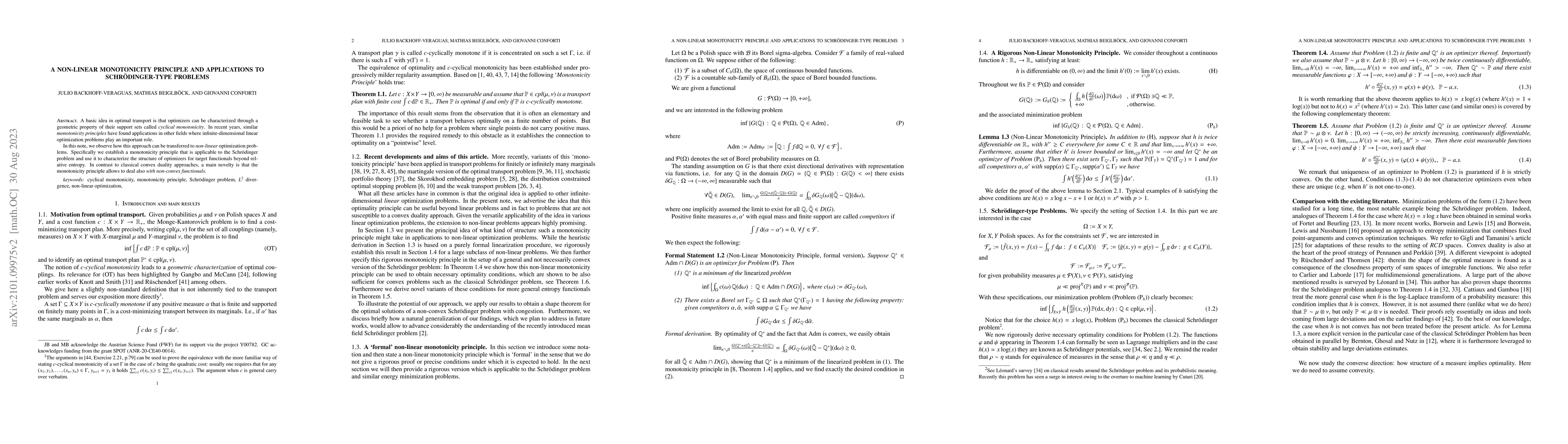 This paper introduces a non-linear monotonicity principle applicable to Schrödinger type problems, extending the concept of cyclical monotonicity from optimal transport to non-linear optimization. It characterizes optimizers for non-convex functionals, offering a novel approach beyond traditional convex duality methods.
