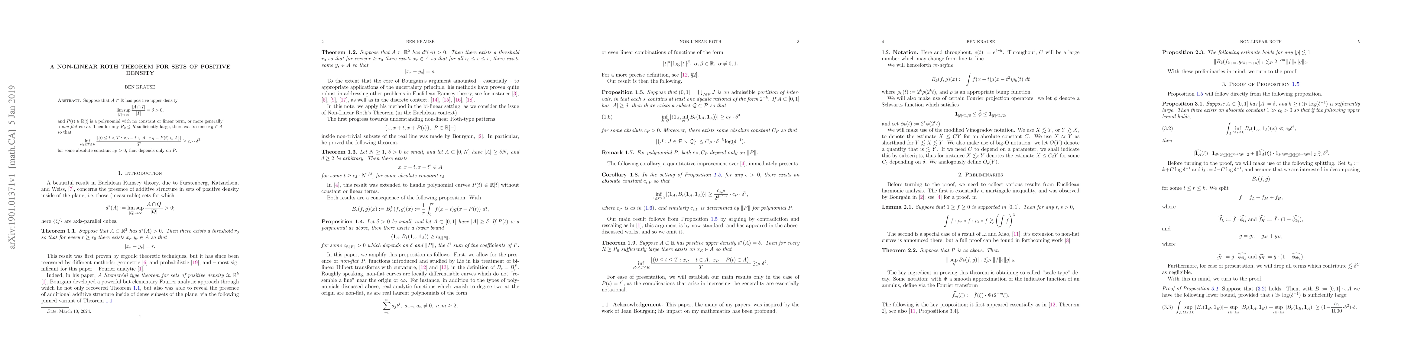 Suppose that $A \subset \mathbb{R}$ has positive upper density, \[ \limsup_{|I| \to \infty} \frac{|A \cap I|}{|I|} = \delta > 0,\] and $P(t) \in \mathbb{R}[t]$ is a polynomial with no constant or linear term, or more generally a non-flat curve: a locally differentiable curve which doesn't "resemble a line" near $0$ or $\infty$. Then for any $R_0 \leq R$ sufficiently large, there exists some $x_R \in A$ so that \[ \inf_{R_0 \leq T \leq R} \frac{|\{ 0 \leq t < T : x_R - t \in A, \ x_R - P(t) \in A \}|}{T} \geq c_P \cdot \delta^2 \] for some absolute constant $c_P > 0$, that depends only on $P$.