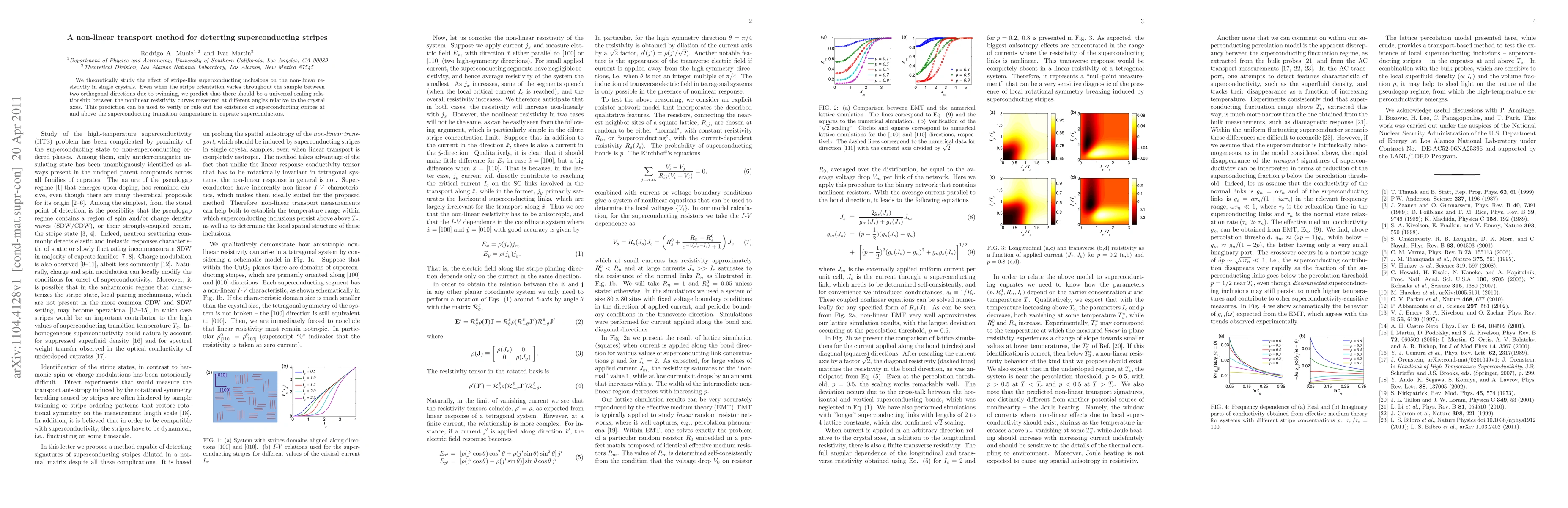 This research proposes a non-linear transport method to detect superconducting stripes in cuprate superconductors. Despite varying stripe orientations due to twinning, a universal scaling relationship between nonlinear resistivity curves measured at different angles is predicted, which can confirm or refute the presence of superconducting stripes above the superconducting transition temperature.