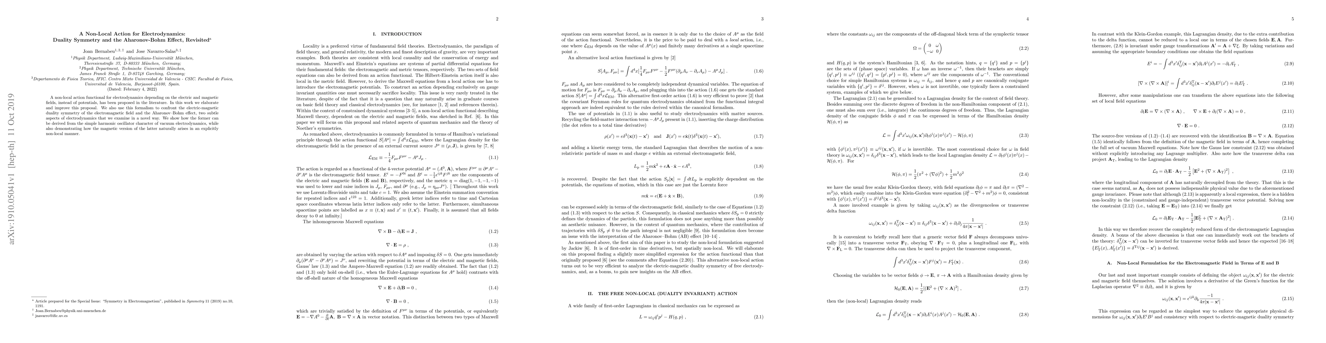 This paper proposes an improved non-local action for electrodynamics based on electric and magnetic fields, deriving electric-magnetic duality symmetry from the harmonic oscillator nature of vacuum electrodynamics. It also shows how the Aharonov-Bohm effect emerges naturally in this non-local framework.