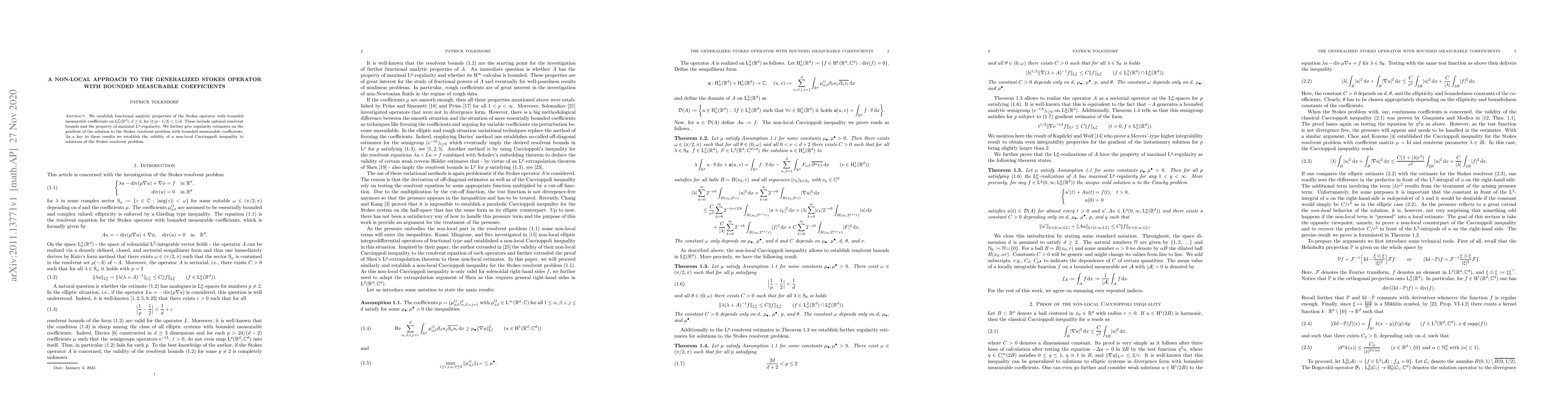Researchers establish functional analytic properties of the Stokes operator with bounded measurable coefficients on a specific function space, providing optimal resolvent bounds and regularity estimates for solutions.