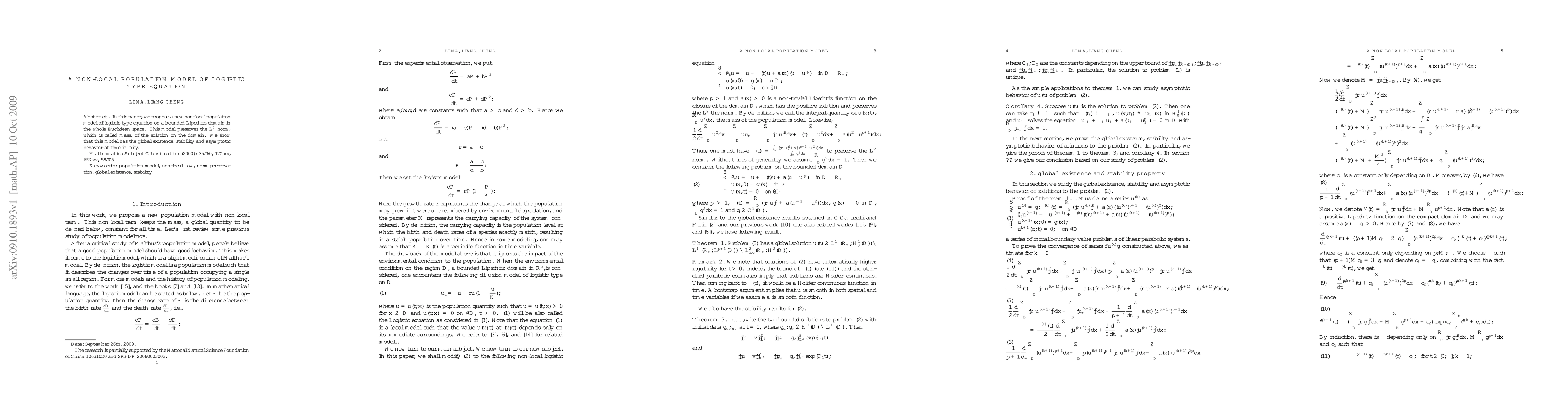 In this paper, we propose a new non-local population model of logistic type equation on a bounded Lipschitz domain in the whole Euclidean space. This model preserves the L^2 norm, which is called mass, of the solution on the domain. We show that this model has the global existence, stability and asymptotic behavior at time infinity.