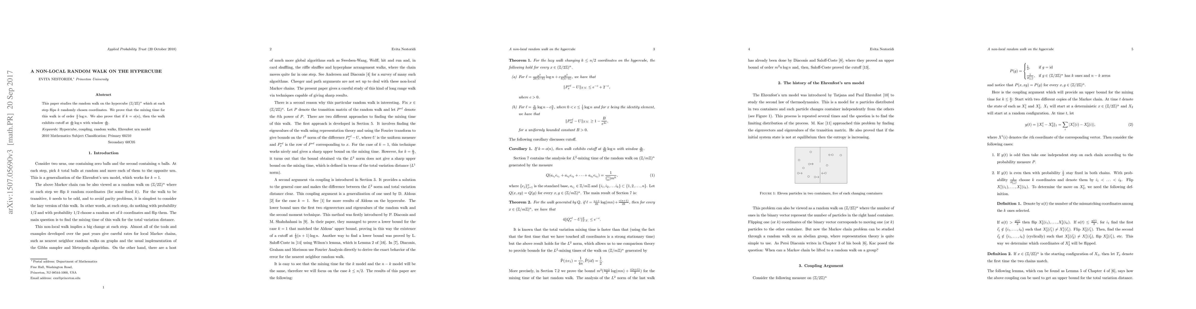 This paper investigates the random walk on the hypercube $(\mathbb{Z}/2\mathbb{Z})^n$ where $k$ coordinates are flipped at each step. It establishes that the mixing time is $\frac{n}{k} \log n$ and demonstrates cutoff behavior when $k=o(n)$ with a window of $\frac{n}{2k}$.