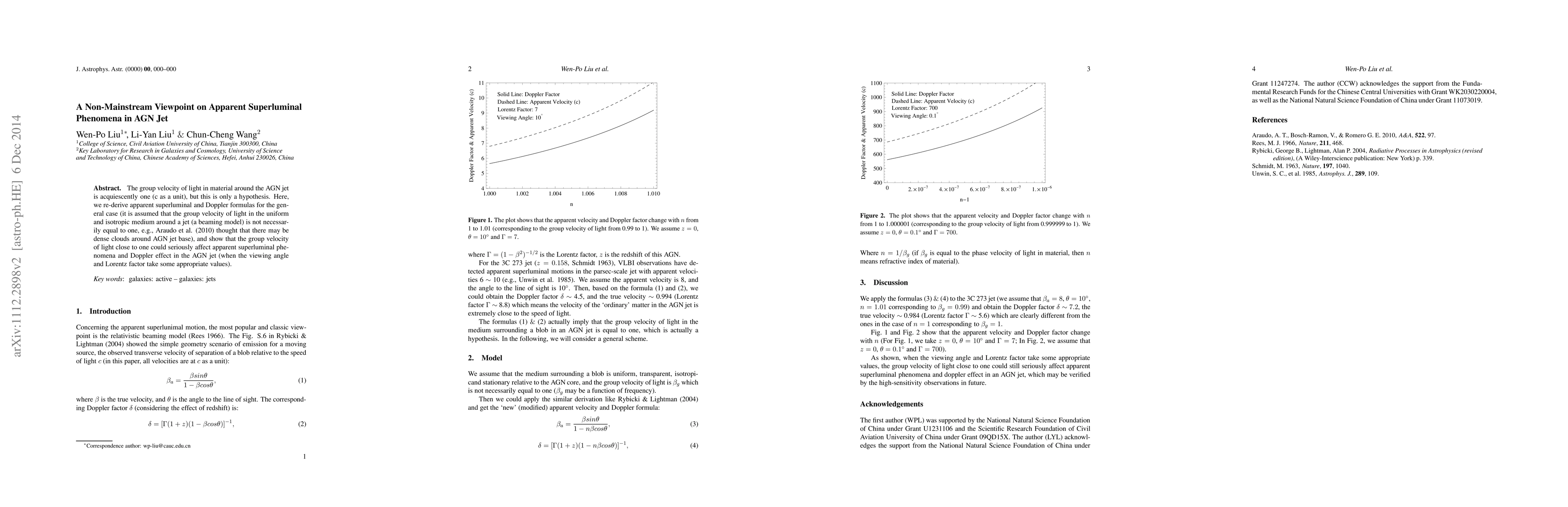 This paper re-examines apparent superluminal phenomena in AGN jets, proposing that the group velocity of light near the jet may not always equal the speed of light in vacuum, thus influencing observed superluminal speeds and Doppler effects under specific viewing angles and Lorentz factors.