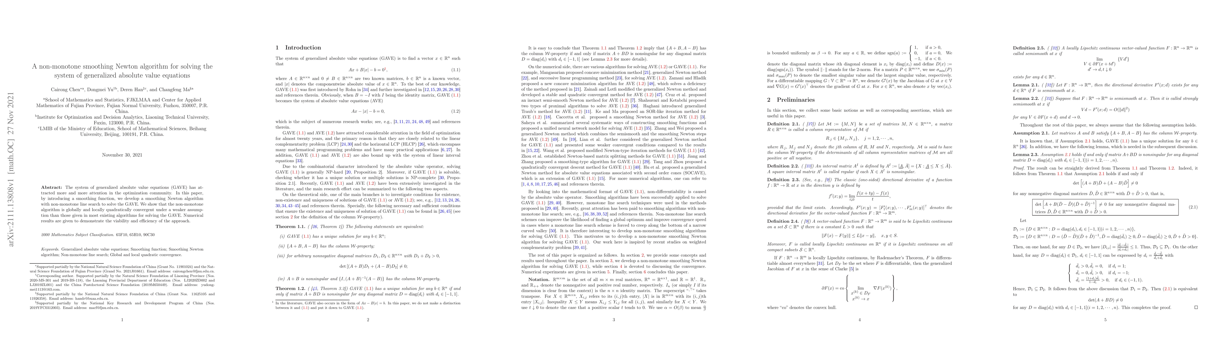 This paper presents a non-monotone smoothing Newton algorithm for solving generalized absolute value equations (GAVE), demonstrating global and local quadratic convergence under weaker assumptions. Numerical results show the method's efficiency and effectiveness.