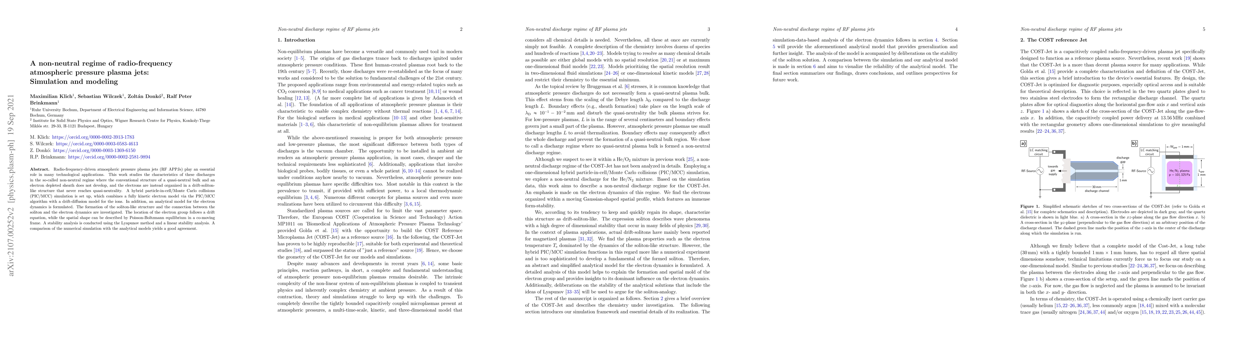 This paper investigates the unique characteristics of radio-frequency atmospheric pressure plasma jets in the non-neutral regime using PIC/MCC simulations and an analytical model, revealing a drift-soliton-like electron structure and validating the models through stability analysis. The study provides insights into the electron dynamics and soliton formation in these plasma jets.