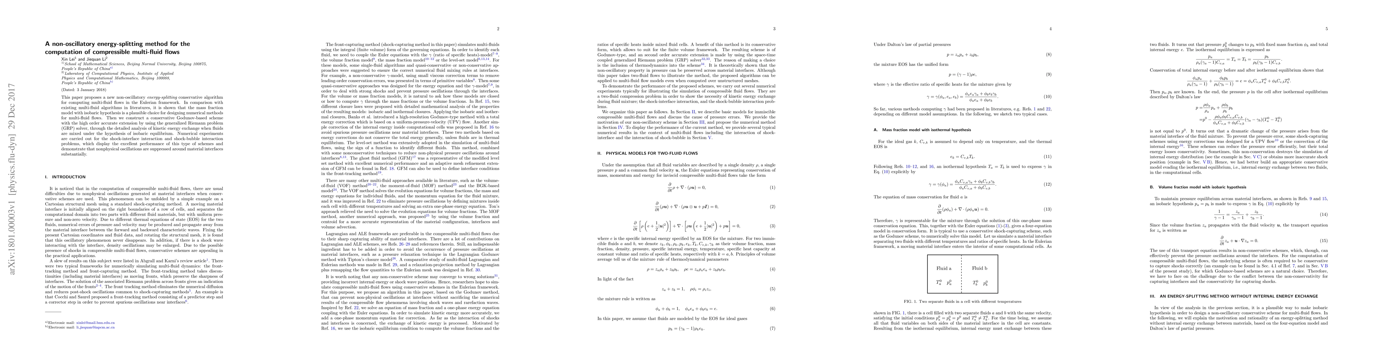 This paper introduces a novel non-oscillatory energy-splitting conservative algorithm for multi-fluid flows, demonstrating that the mass fraction model with isobaric hypothesis is effective. The proposed Godunov-based scheme, using a generalized Riemann problem solver, shows superior performance in suppressing nonphysical oscillations during fluid interactions.