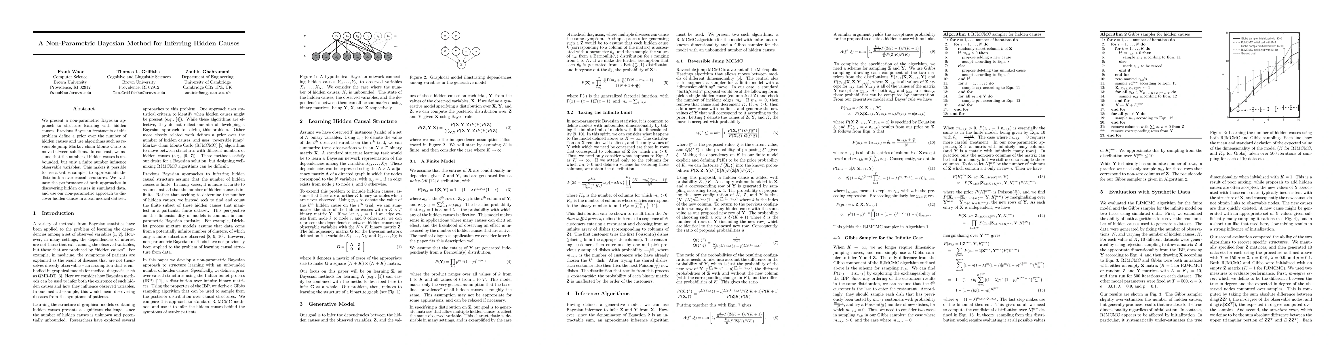 This paper introduces a non-parametric Bayesian method for inferring hidden causal structures without a predefined limit on the number of causes, employing a Gibbs sampler for approximation. The method is evaluated against traditional approaches on simulated data and successfully applied to uncover hidden causes in a real medical dataset.
