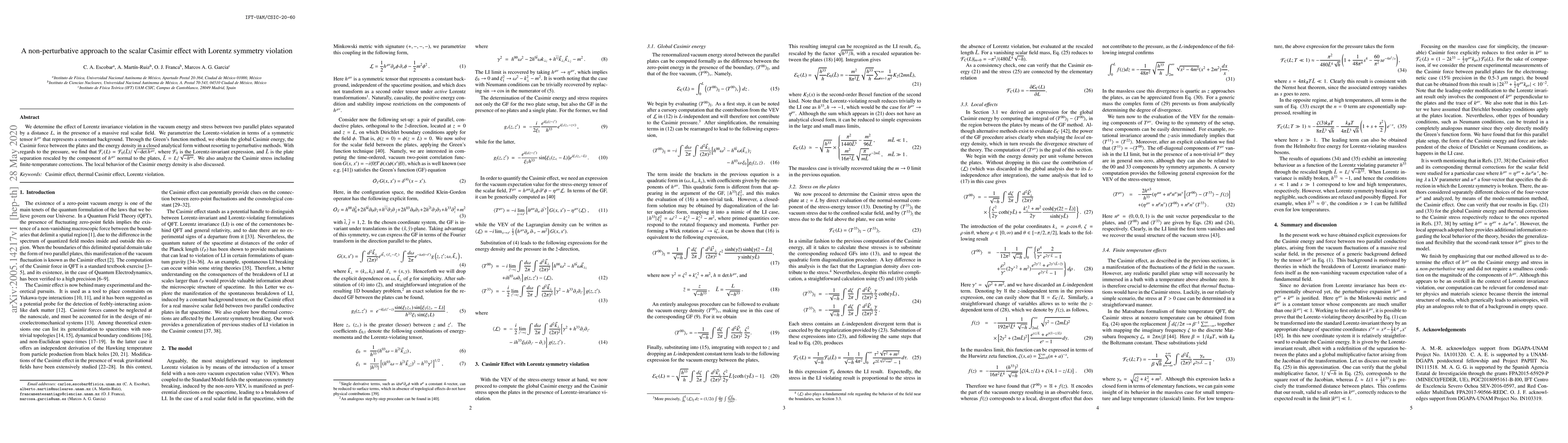 This paper investigates the scalar Casimir effect under Lorentz symmetry violation using a non-perturbative approach. It derives the global Casimir energy, force, and stress between parallel plates in a closed analytical form, revealing a rescaled plate separation dependent on the Lorentz-violation tensor.