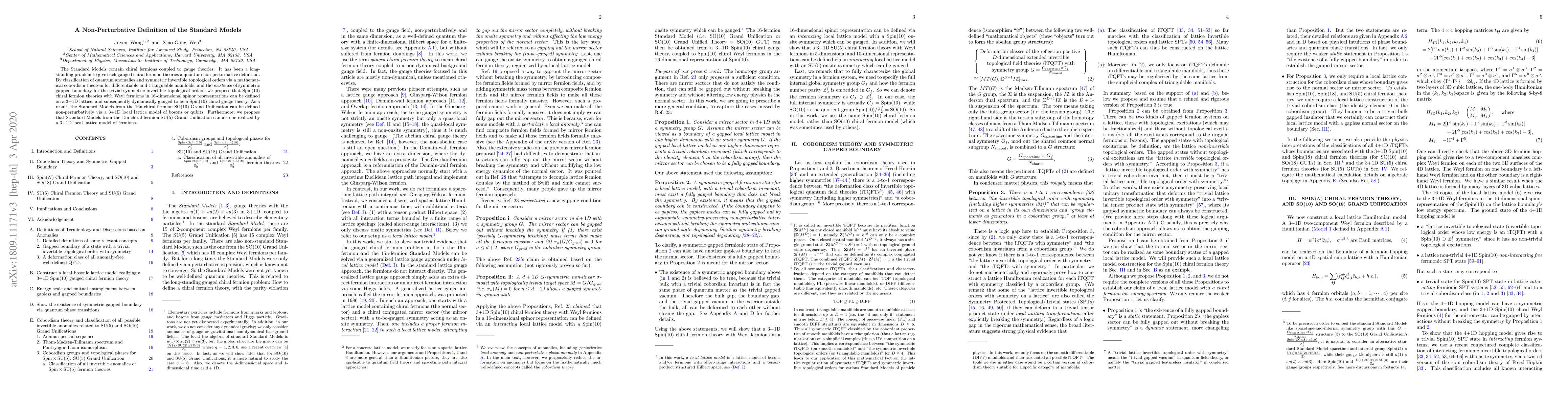 This paper proposes a non-perturbative definition for the Standard Models of particle physics by classifying quantum anomalies and utilizing topological orders. It suggests that Spin(10) chiral fermion theories can be defined on a 3+1D lattice and dynamically gauged, enabling a non-perturbative definition of the Standard Models from SO(10) Grand Unification.