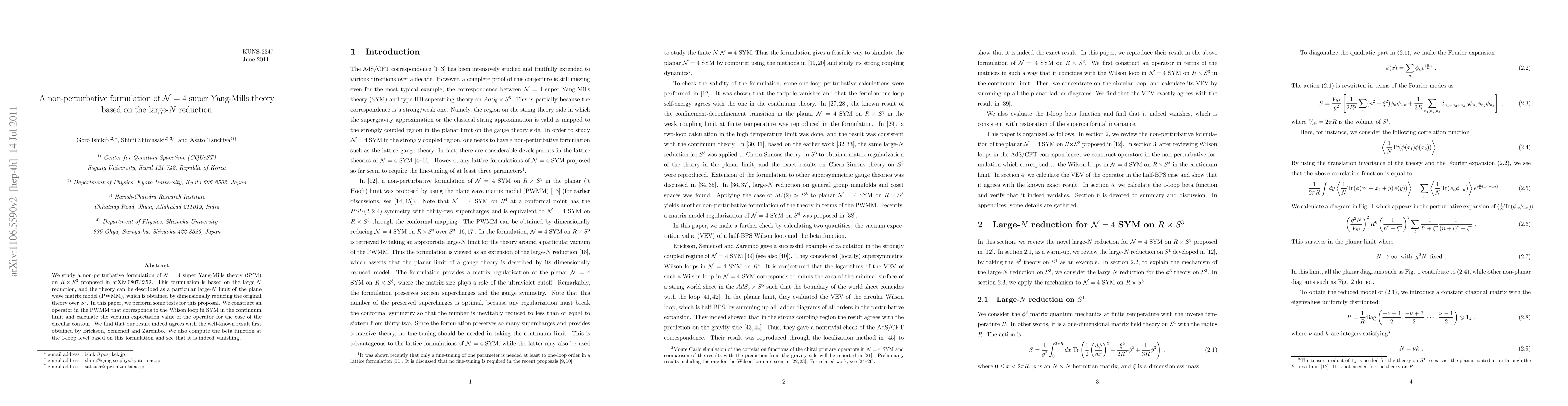 This paper proposes a non-perturbative formulation of N=4 super Yang-Mills theory through the large-N reduction, showing agreement with known results for a Wilson loop operator and verifying a vanishing 1-loop beta function.