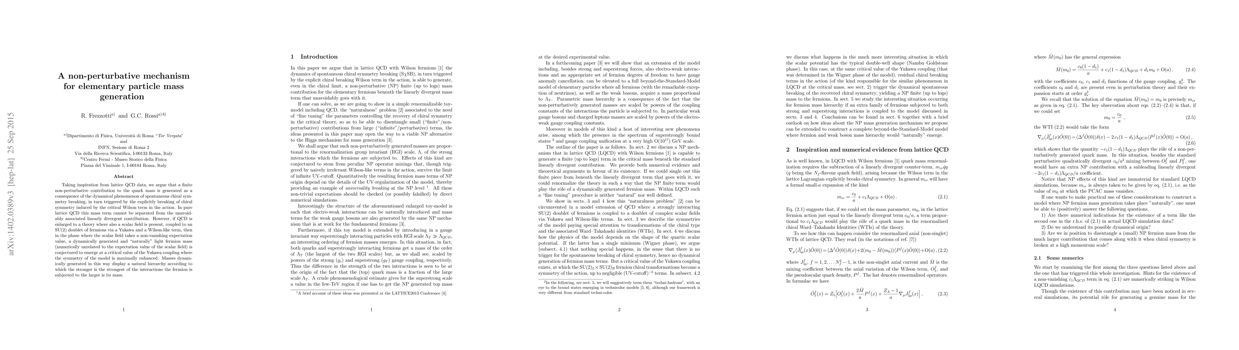 Taking inspiration from lattice QCD data, we argue that a finite non-perturbative contribution to the quark mass is generated as a consequence of the dynamical phenomenon of spontaneous chiral symmetry breaking, in turn triggered by the explicitly breaking of chiral symmetry induced by the critical Wilson term in the action. In pure lattice QCD this mass term cannot be separated from the unavoidably associated linearly divergent contribution. However, if QCD is enlarged to a theory where also a scalar field is present, coupled to an SU(2) doublet of fermions via a Yukawa and a Wilson-like term, then in the phase where the scalar field takes a non-vanishing expectation value, a dynamically generated and "naturally" light fermion mass (numerically unrelated to the expectation value of the scalar field) is conjectured to emerge at a critical value of the Yukawa coupling where the symmetry of the model is maximally enhanced. Masses dynamically generated in this way display a natural hierarchy according to which the stronger is the strongest of the interactions the fermion is subjected to the larger is its mass.
