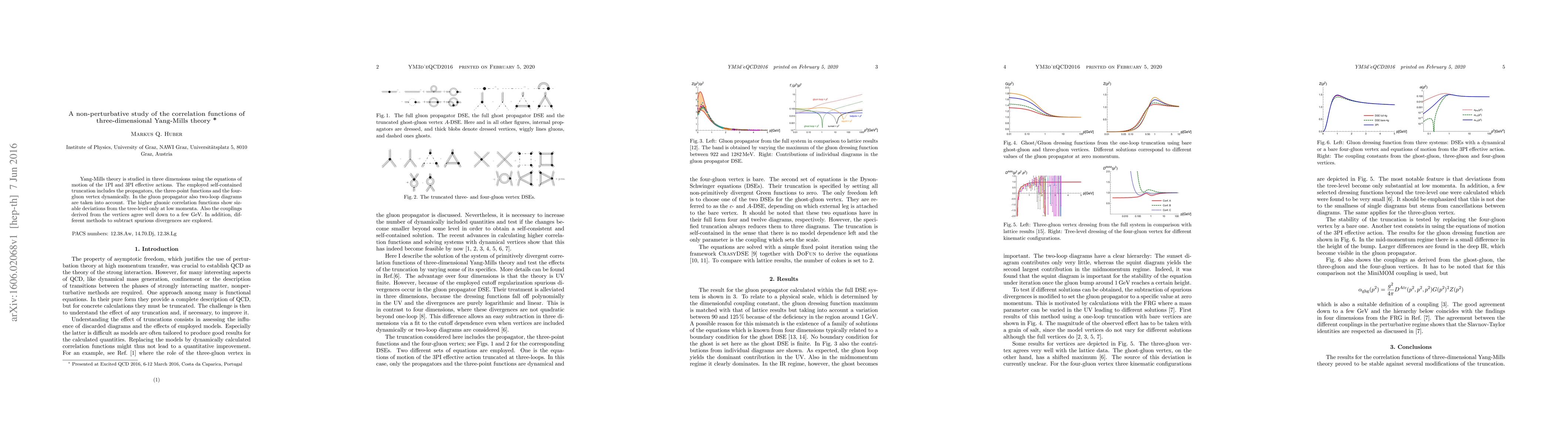 This paper investigates three-dimensional Yang-Mills theory using non-perturbative methods, focusing on the correlation functions derived from $1$PI and $3$PI effective actions. The study finds significant deviations from tree-level predictions only at low momenta, with good agreement in couplings down to a few GeV, and explores techniques for subtracting spurious divergences.