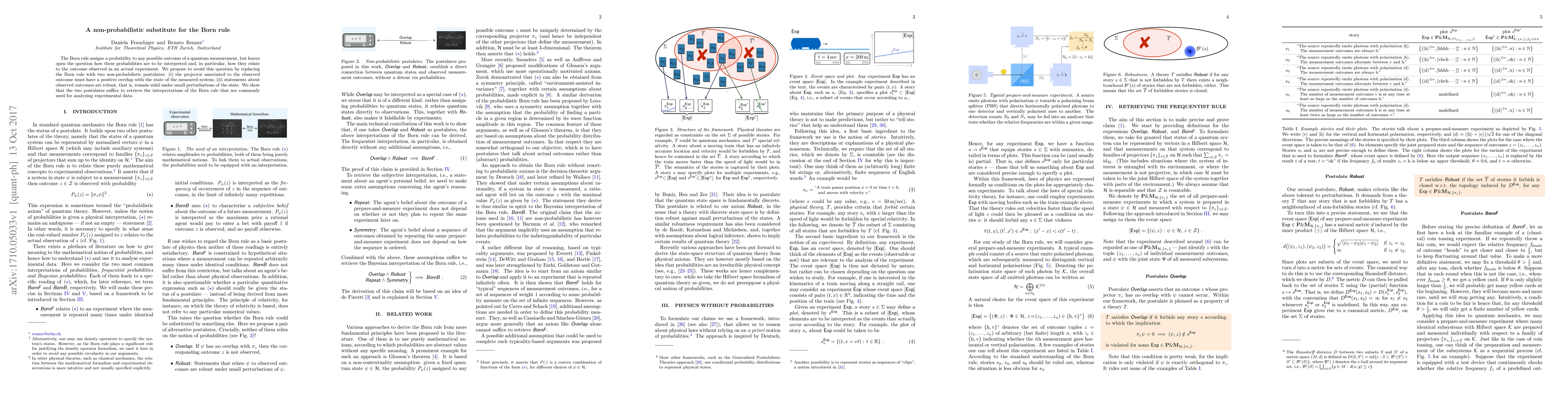 The Born rule assigns a probability to any possible outcome of a quantum measurement, but leaves open the question how these probabilities are to be interpreted and, in particular, how they relate to the outcome observed in an actual experiment. We propose to avoid this question by replacing the Born rule with two non-probabilistic postulates: (i) the projector associated to the observed outcome must have a positive overlap with the state of the measured system; (ii) statements about observed outcomes are robust, that is, remain valid under small perturbations of the state. We show that the two postulates suffice to retrieve the interpretations of the Born rule that are commonly used for analysing experimental data.