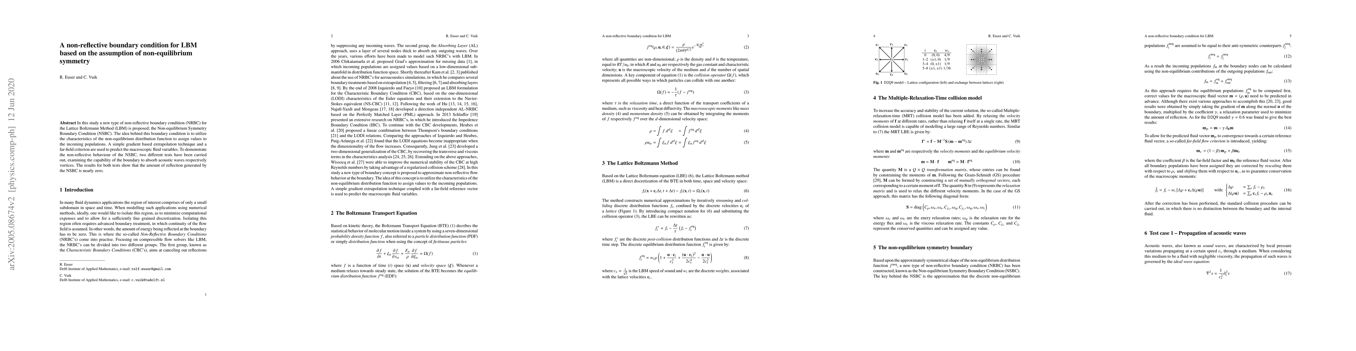This paper proposes a new Non-equilibrium Symmetry Boundary Condition (NSBC) for the Lattice Boltzmann Method (LBM) to create non-reflective boundary conditions. The NSBC uses non-equilibrium distribution function characteristics and gradient extrapolation to minimize reflections, demonstrated effectively in tests for acoustic waves and vortices.