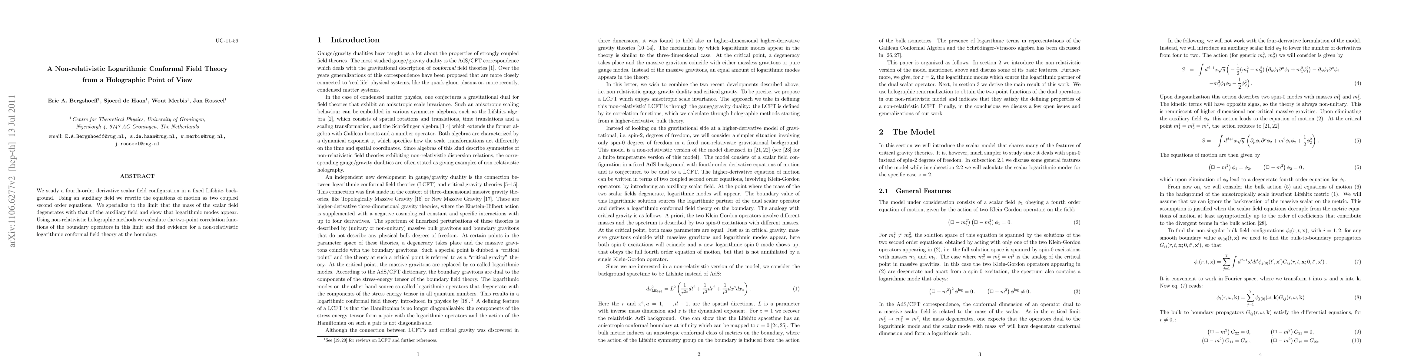 This paper investigates a fourth-order scalar field in a Lifshitz background, demonstrating the emergence of logarithmic modes when the scalar field's mass degenerates with an auxiliary field. It employs non-relativistic holographic methods to find evidence for a non-relativistic logarithmic conformal field theory at the boundary.