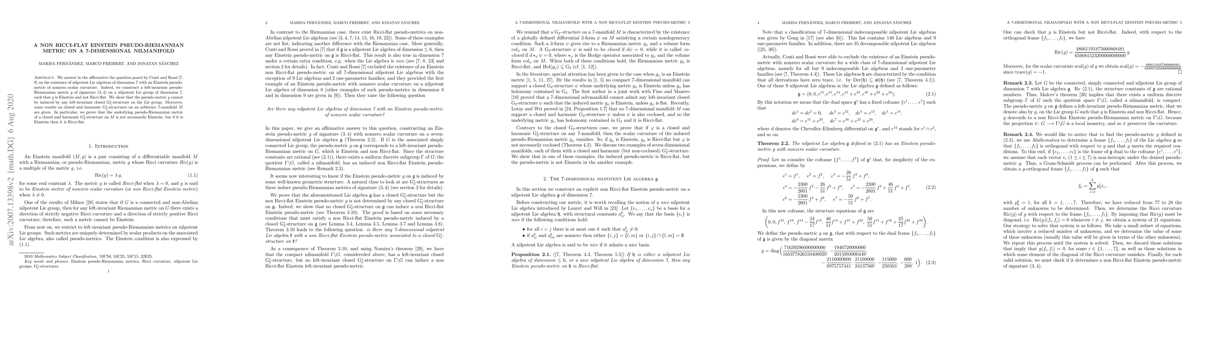 This paper constructs a non-Ricci-flat Einstein pseudo-Riemannian metric on a 7-dimensional nilmanifold, answering a question about the existence of such metrics on nilpotent Lie algebras. It also discusses the relationship between these metrics and $G_2^*$-structures, showing that the constructed metric cannot be induced by any such structure.