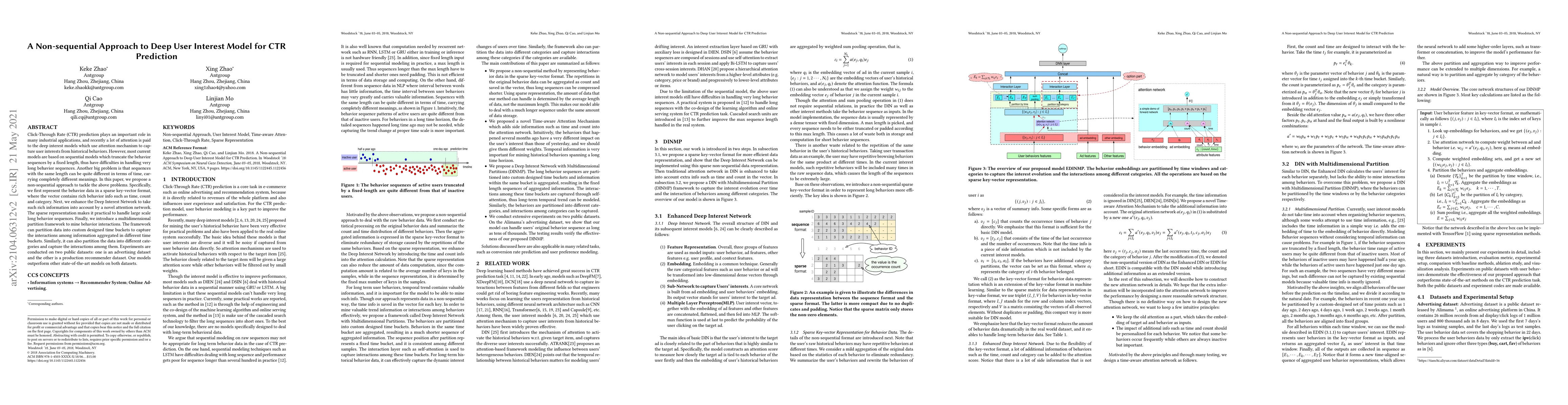 Click-Through Rate (CTR) prediction plays an important role in many industrial applications, and recently a lot of attention is paid to the deep interest models which use attention mechanism to capture user interests from historical behaviors. However, most current models are based on sequential models which truncate the behavior sequences by a fixed length, thus have difficulties in handling very long behavior sequences. Another big problem is that sequences with the same length can be quite different in terms of time, carrying completely different meanings. In this paper, we propose a non-sequential approach to tackle the above problems. Specifically, we first represent the behavior data in a sparse key-vector format, where the vector contains rich behavior info such as time, count and category. Next, we enhance the Deep Interest Network to take such rich information into account by a novel attention network. The sparse representation makes it practical to handle large scale long behavior sequences. Finally, we introduce a multidimensional partition framework to mine behavior interactions. The framework can partition data into custom designed time buckets to capture the interactions among information aggregated in different time buckets. Similarly, it can also partition the data into different categories and capture the interactions among them. Experiments are conducted on two public datasets: one is an advertising dataset and the other is a production recommender dataset. Our models outperform other state-of-the-art models on both datasets.