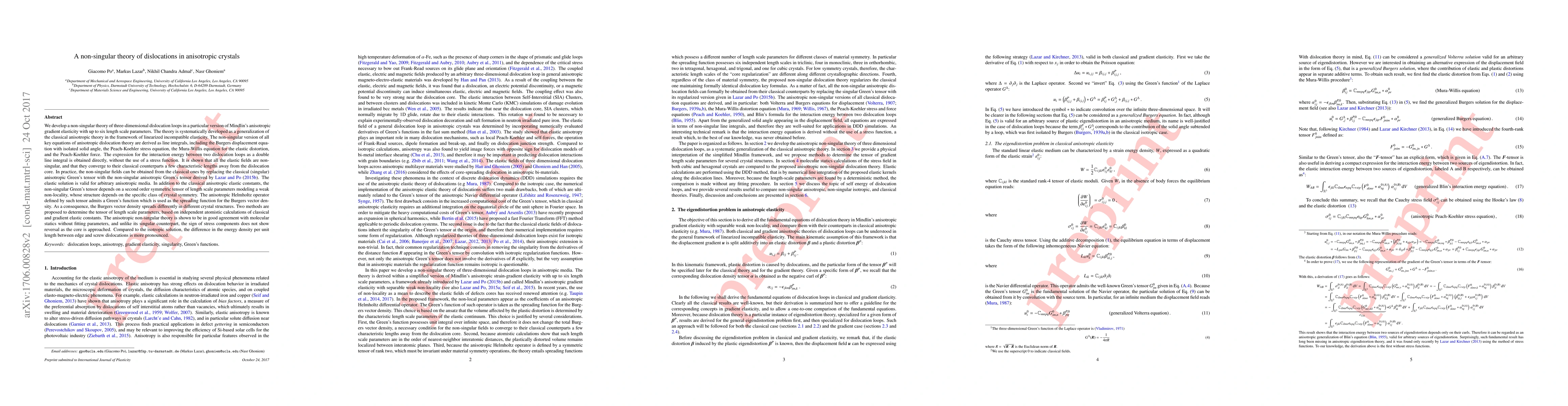 This research introduces a non-singular theory for dislocations in anisotropic crystals, generalizing classical theories and incorporating up to six length scale parameters. It derives key dislocation equations as line integrals, ensuring non-singular elastic fields that converge to classical forms away from the core, applicable to arbitrary anisotropic media with unique spreading of Burgers vector density based on crystal symmetry.