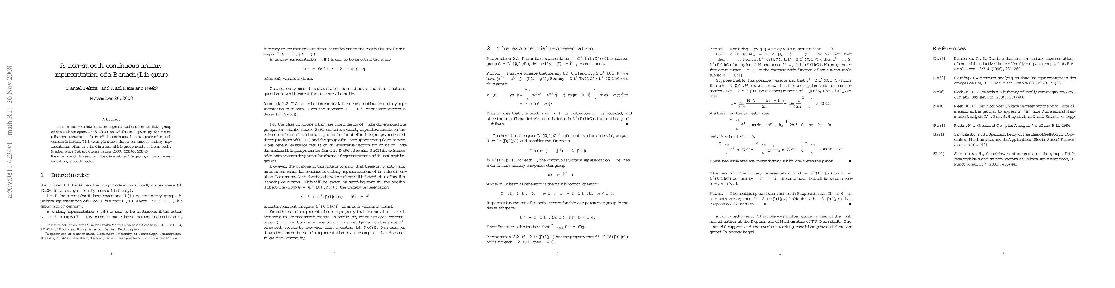 Summary: This paper demonstrates a non-smooth continuous unitary representation of the additive group of $L^2([0,1],\R)$ on $L^2([0,1],\C)$ via multiplication operators, highlighting that such representations can be continuous without any smooth vectors.