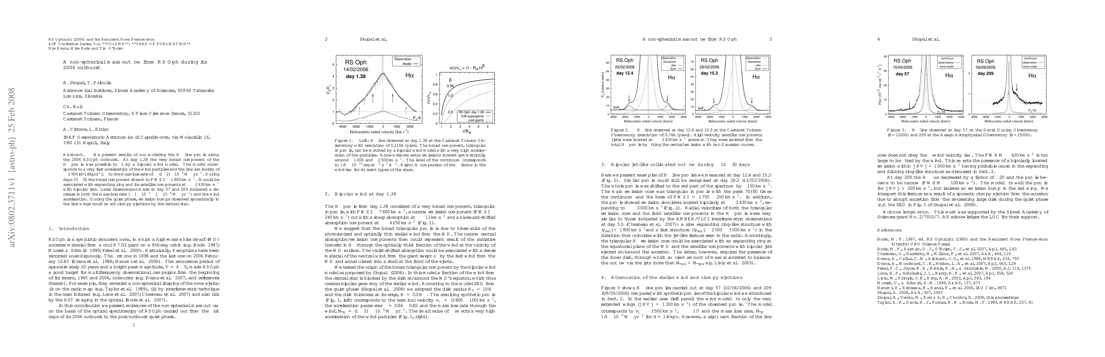 We present results of our modeling the H-alpha line profile along the 2006 RS Oph outburst. At day 1.38 the very broad component of the H-alpha profile was possible to fit by a bipolar wind model. The model corresponds to a very fast acceleration of the wind particles, and the line luminosity of about 2900 (d/1.6 kpc)^2 solar luminosities to the mass-loss rate of around (1-2) x 10E-4 solar masses per year. During days 10-30 the broad component shrank to FWZI = 1800 km/s. It could be associated with expanding ring and its satellite components at about +/- 2430 km/s with bipolar jets. Later observations made at day 57 and 209 indicated a decrease in both the mass-loss rate (1xE-5 - 1xE-6 solar masses per year) and the wind acceleration. During the quiet phase, emission bumps observed sporadically in the line wings could reflect clumpy ejections by the central star.