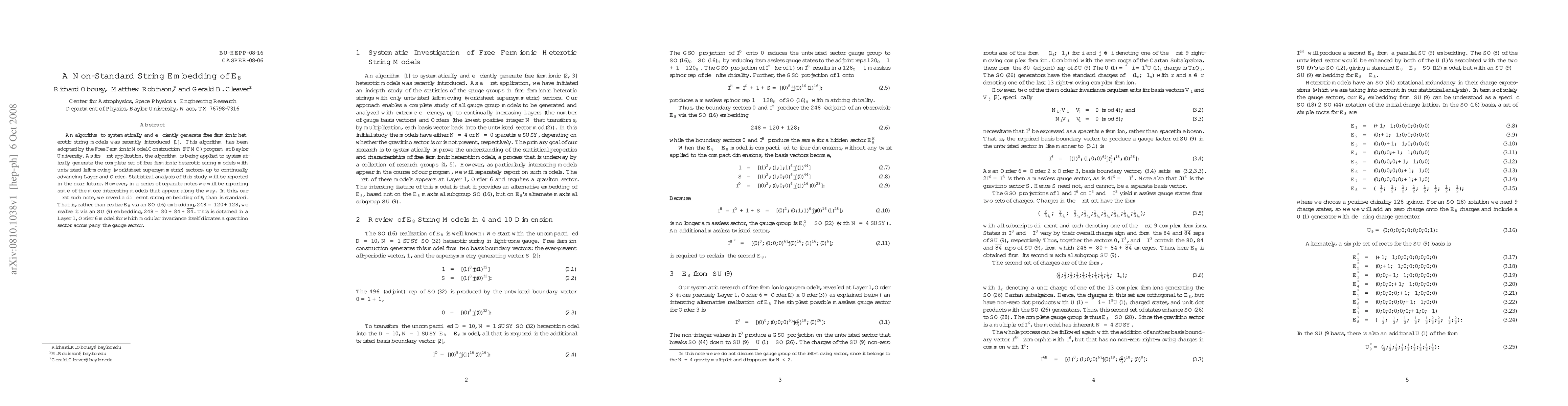 An algorithm to systematically and efficiently generate free fermionic heterotic string models was recently introduced. This algorithm has been adopted by the Free Fermionic Model Construction (FFMC) program at Baylor University. As its first application, the algorithm is being applied to systematically generate the complete set of free fermionic heterotic string models with untwisted left-moving (worldsheet supersymmetric) sectors, up to continually advancing Layer and Order. Statistical analysis of this study will be reported in the near future. However, in a series of separate notes we will be reporting some of the more interesting models that appear along the way. In this, our first such note, we reveal a different string embedding of E8 than is standard. That is, rather than realize E8 via an SO(16) embedding, 248 = 120 + 128, we realize it via an SU(9) embedding, 248 = 80 + 84 + 84-bar. This is obtained in a Layer 1, Order 6 model for which modular invariance itself dictates a gravitino sector accompany the gauge sector.