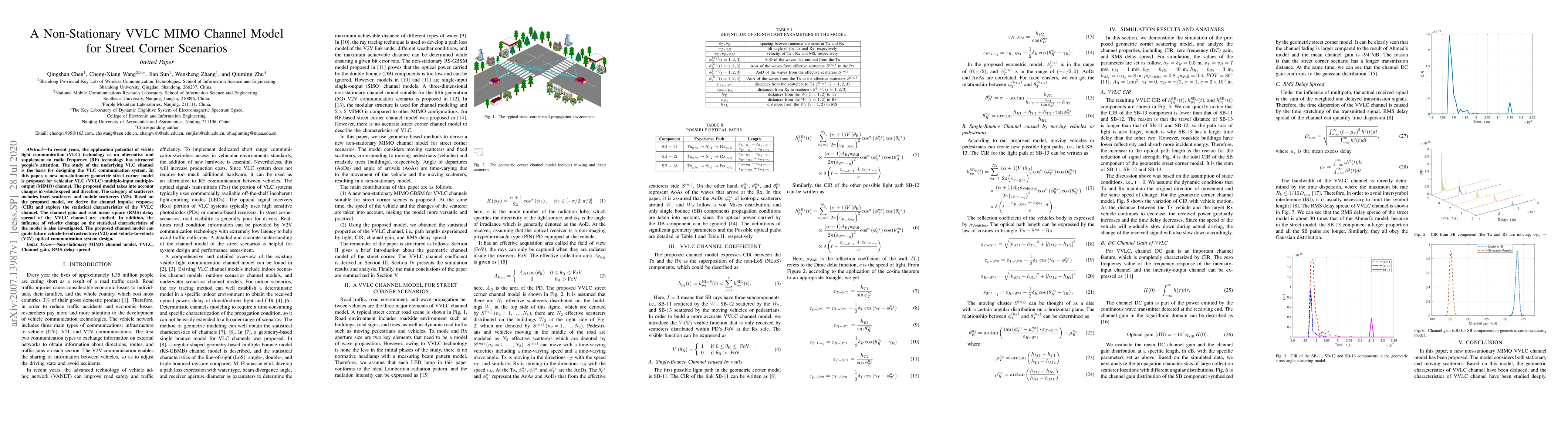 This paper proposes a non-stationary geometric street corner model for vehicular visible light communication (VVLC) MIMO channels, considering vehicle speed and direction changes. The model explores the channel impulse response and statistical characteristics, including channel gain and RMS delay spread, to guide future V2I and V2V optical communication systems.