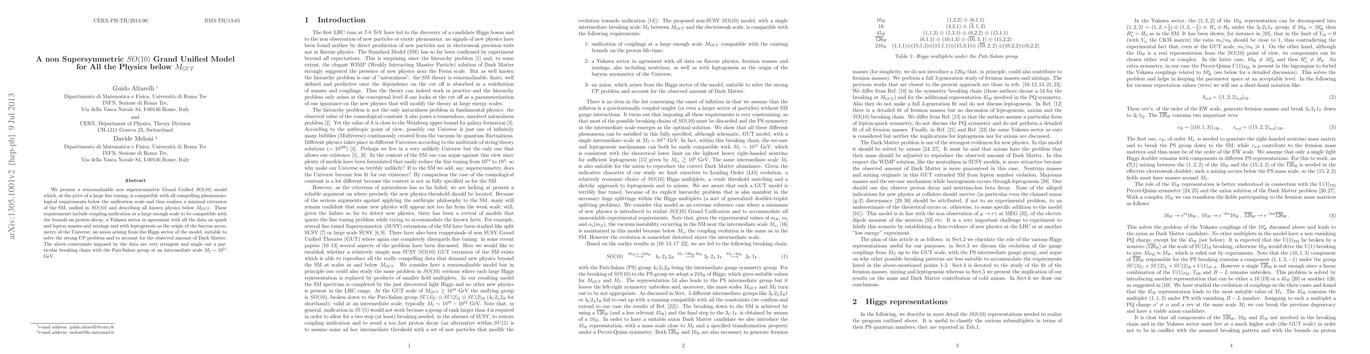We present a renormalizable non supersymmetric Grand Unified SO(10) model which, at the price of a large fine tuning, is compatible with all compelling phenomenological requirements below the unification scale and thus realizes a minimal extension of the SM, unified in SO(10) and describing all known physics below $M_{GUT}$. These requirements include coupling unification at a large enough scale to be compatible with the bounds on proton decay; a Yukawa sector in agreement with all the data on quark and lepton masses and mixings and with leptogenesis as the origin of the baryon asymmetry of the Universe; an axion arising from the Higgs sector of the model, suitable to solve the strong CP problem and to account for the observed amount of Dark Matter. The above constraints imposed by the data are very stringent and single out a particular breaking chain with the Pati-Salam group at an intermediate scale $M_I\sim10^{11}$ GeV.