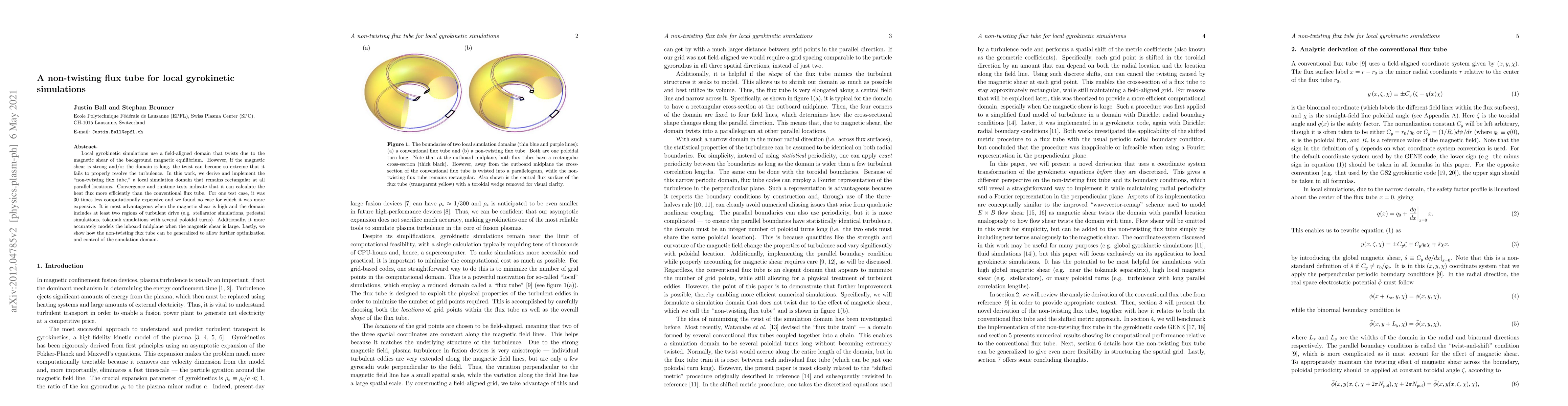 This paper introduces a "non-twisting flux tube" for local gyrokinetic simulations that maintains a rectangular shape, improving efficiency and accuracy in high magnetic shear scenarios. The method is shown to be significantly less computationally expensive and more effective for modeling turbulent regions.