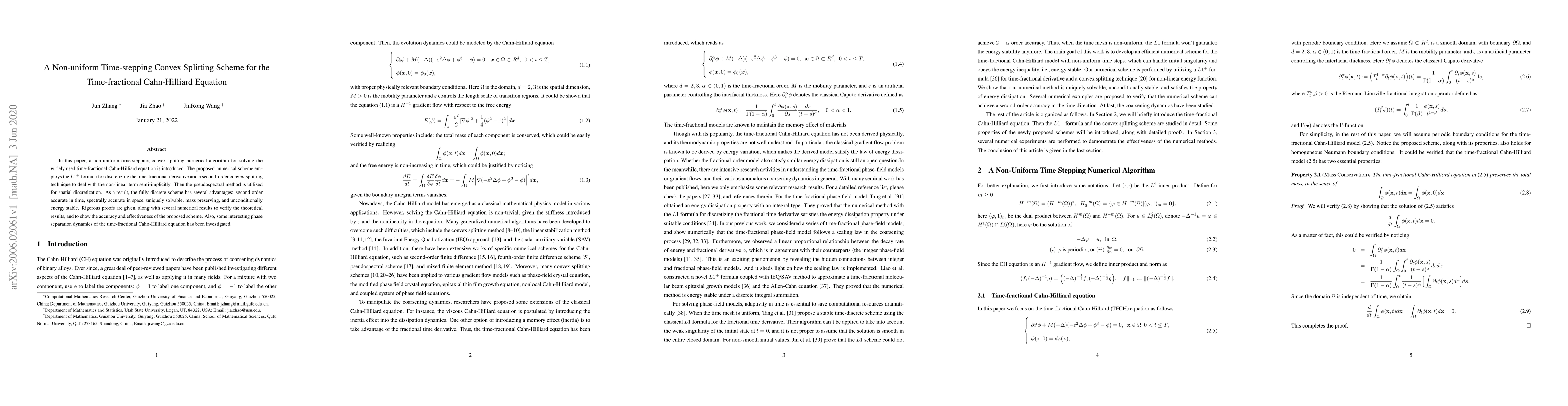 This paper introduces a non-uniform time-stepping convex-splitting numerical scheme for solving the time-fractional Cahn-Hilliard equation, employing $L1^+$ for time discretization and a second-order convex-splitting technique for the non-linear term. The method is shown to be second-order accurate in time, spectrally accurate in space, and unconditionally energy stable.