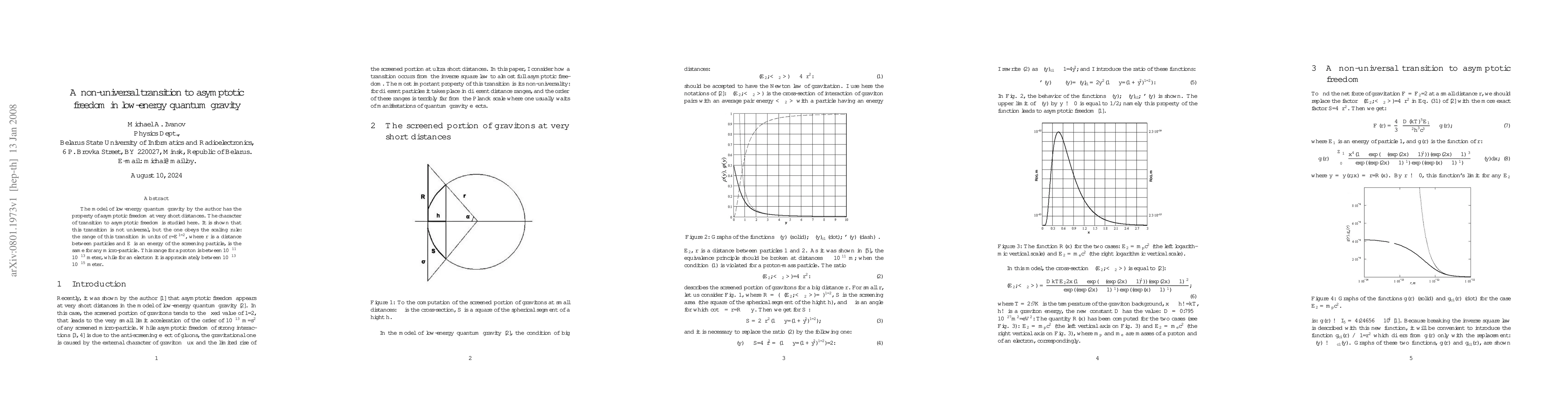The research explores a non-universal transition to asymptotic freedom in low-energy quantum gravity, revealing that the transition range in units of r/E^1/2 is consistent for any micro-particle, with specific ranges identified for a proton (10^-11 - 10^-13 meters) and an electron (10^-13 - 10^-15 meters).