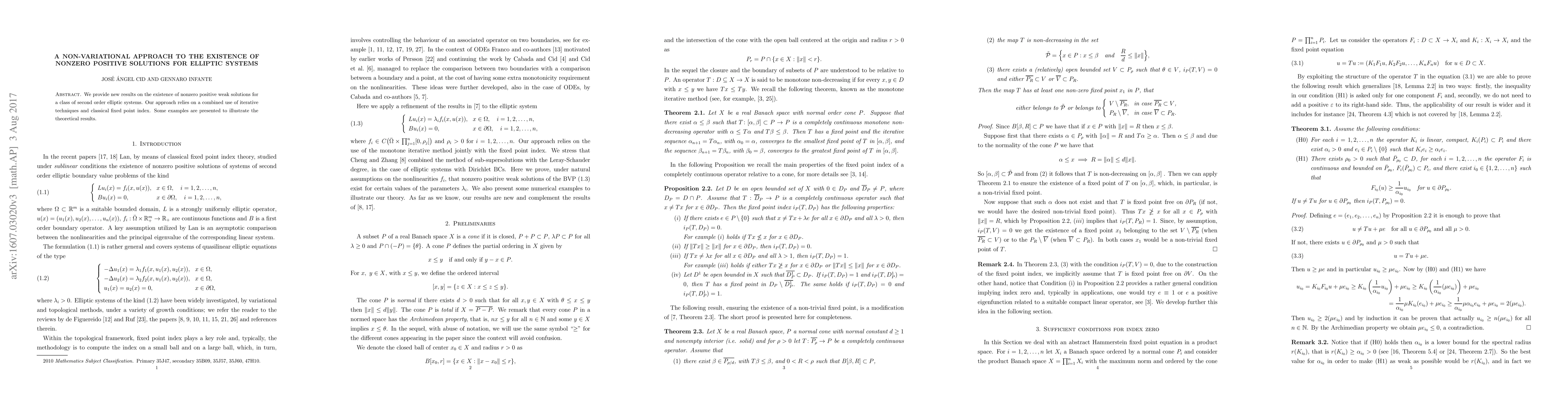This paper presents new findings on the existence of nonzero positive weak solutions for second-order elliptic systems using iterative techniques and classical fixed point index. Examples are provided to demonstrate the theoretical results.