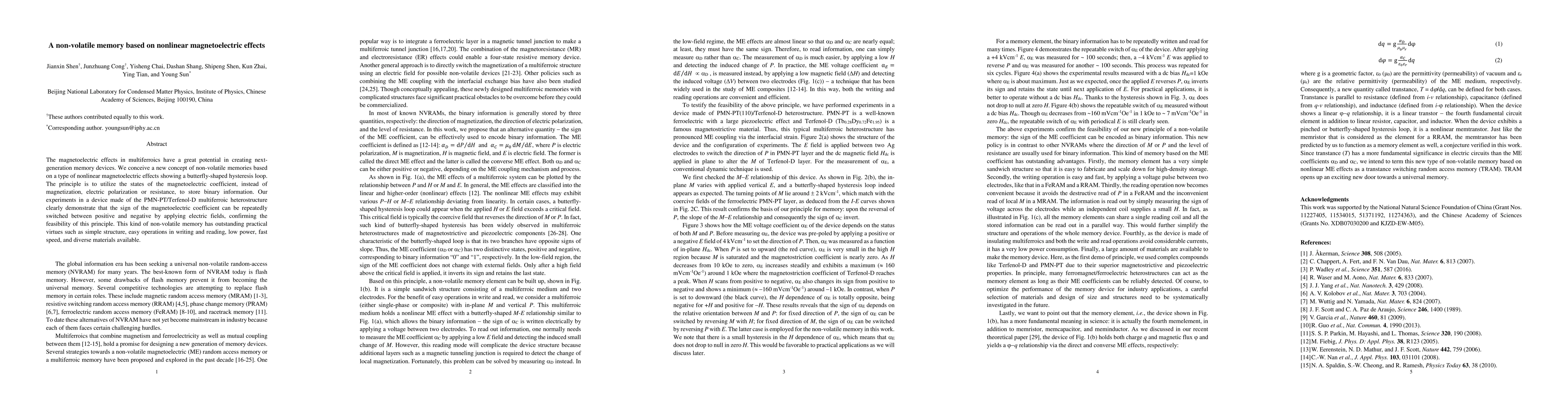 This paper proposes a novel non-volatile memory concept based on nonlinear magnetoelectric effects in multiferroics, demonstrating the switching of the magnetoelectric coefficient via electric fields in a PMN-PT/Terfenol-D heterostructure. The new memory promises simple structure, low power consumption, fast operation, and versatile material compatibility.