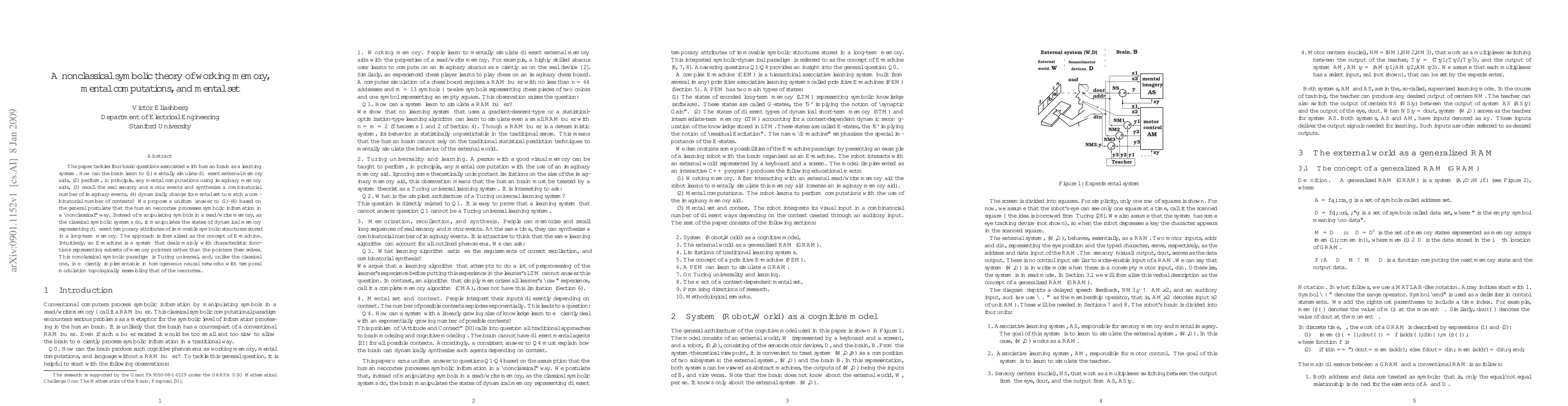 The paper proposes a nonclassical symbolic theory to explain how the brain learns and performs mental computations using symbolic information processed through dynamical memory states, formalized as E-machines, which are efficiently implementable in neural networks. This approach addresses how the brain simulates memory aids, performs computations, recalls events, and adapts to various contexts.