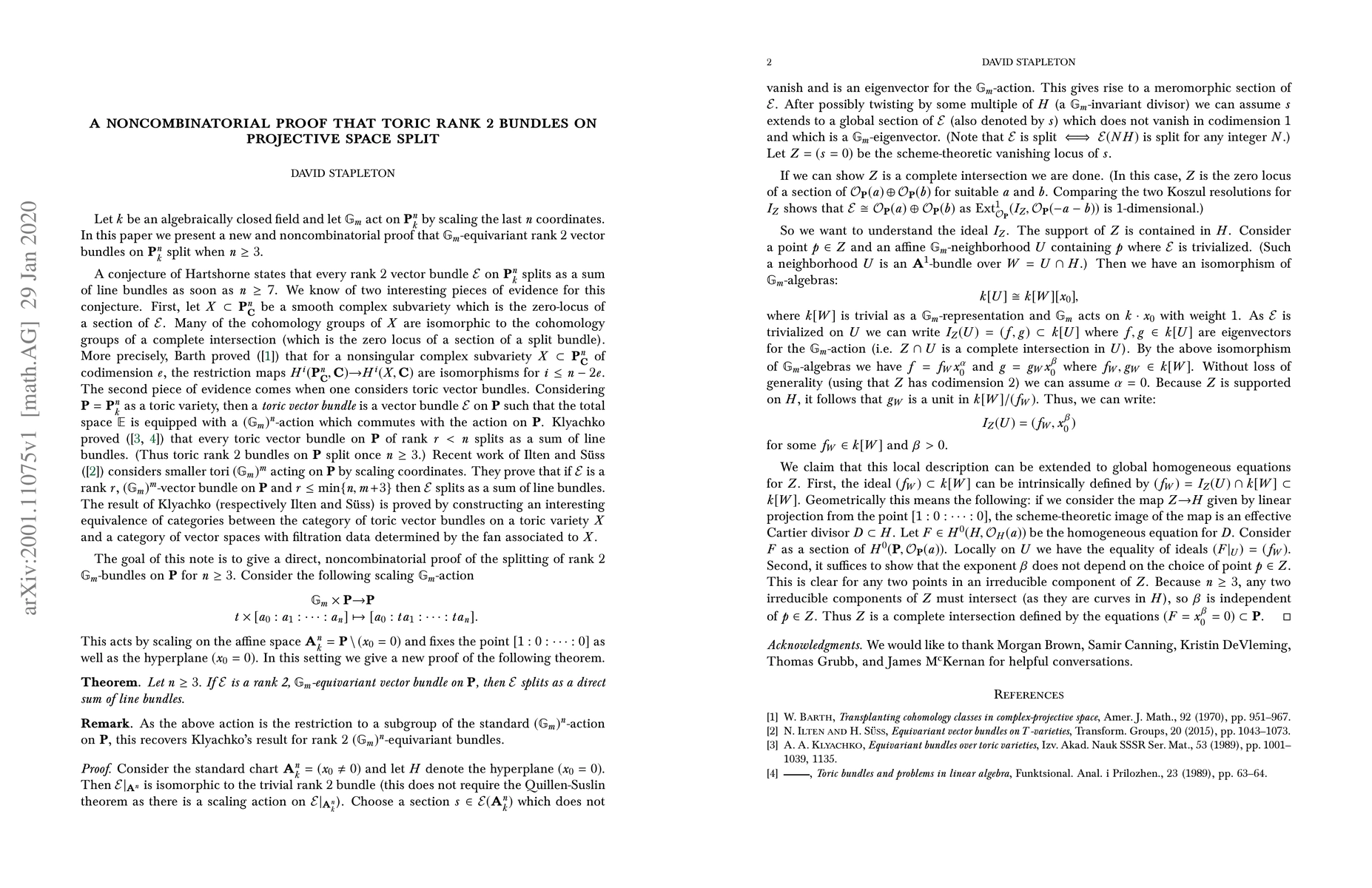 Hartshorne's conjecture about vector bundles on projective space states that any rank 2 vector bundle on n-dimensional projective space splits as soon as n is at least 7. Klyachko has shown that Hartshorne's conjecture is true when the vector bundles are torus equivariant. Moreover, recent work of Ilten and S\"uss generalizes Klyachko's work to the case of a smaller rank torus action on projective space. In this note we give a new, direct proof that torus rank 2 bundles split that avoids a description of the category of torus equivariant vector bundles.