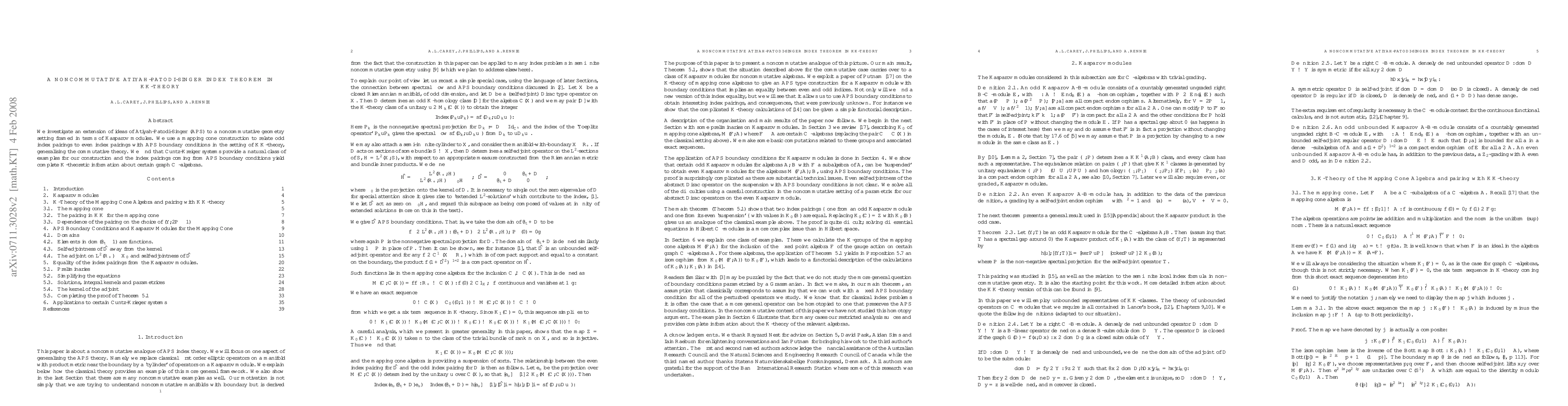 This paper extends the Atiyah-Patodi-Singer index theorem to noncommutative geometry using Kasparov modules and KK-theory, showing that Cuntz-Kreiger systems illustrate the new index pairings that provide complete K-theoretic insights into graph C*-algebras.