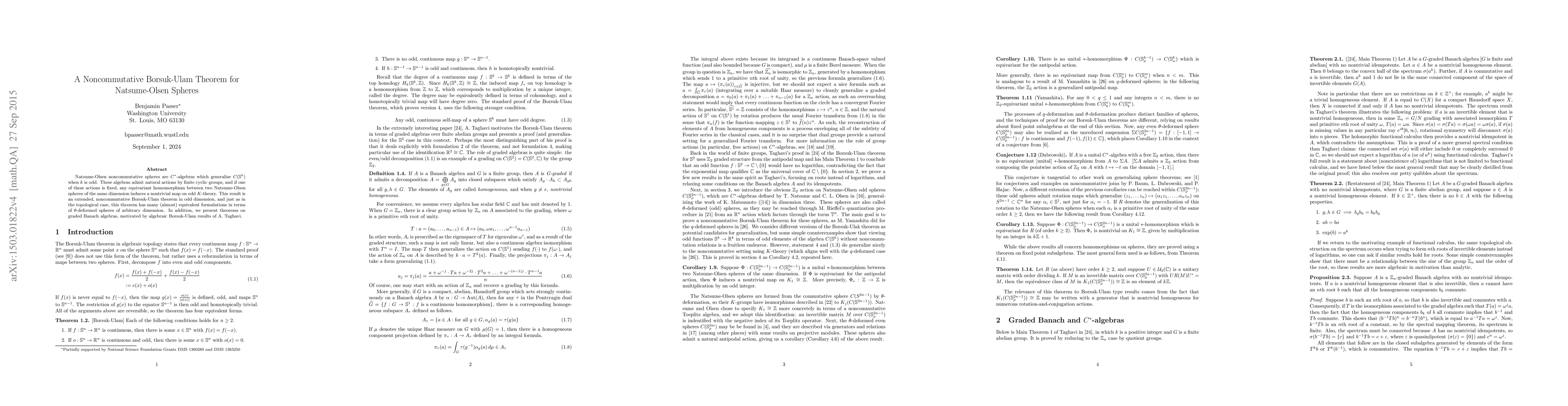 Natsume-Olsen noncommutative spheres are C*-algebras which generalize C(S^k) when k is odd. These algebras admit natural actions by finite cyclic groups, and if one of these actions is fixed, any equivariant homomorphism between two Natsume-Olsen spheres of the same dimension induces a nontrivial map on odd K-theory. This result is an extended, noncommutative Borsuk-Ulam theorem in odd dimension, and just as in the topological case, this theorem has many (almost) equivalent formulations in terms of theta-deformed spheres of arbitrary dimension. In addition, we present theorems on graded Banach algebras, motivated by algebraic Borsuk-Ulam results of A. Taghavi.