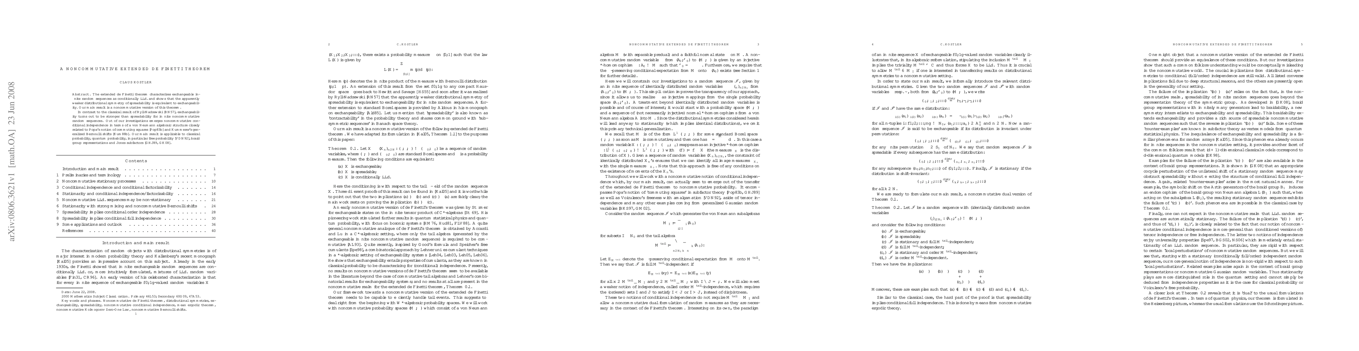 This paper presents a noncommutative extension of the extended de Finetti theorem, demonstrating that exchangeability is stronger than spreadability for infinite noncommutative random sequences. It introduces noncommutative conditional independence via a von Neumann algebraic structure and applies the result to quantum probability, free probability, and representations of braid groups.