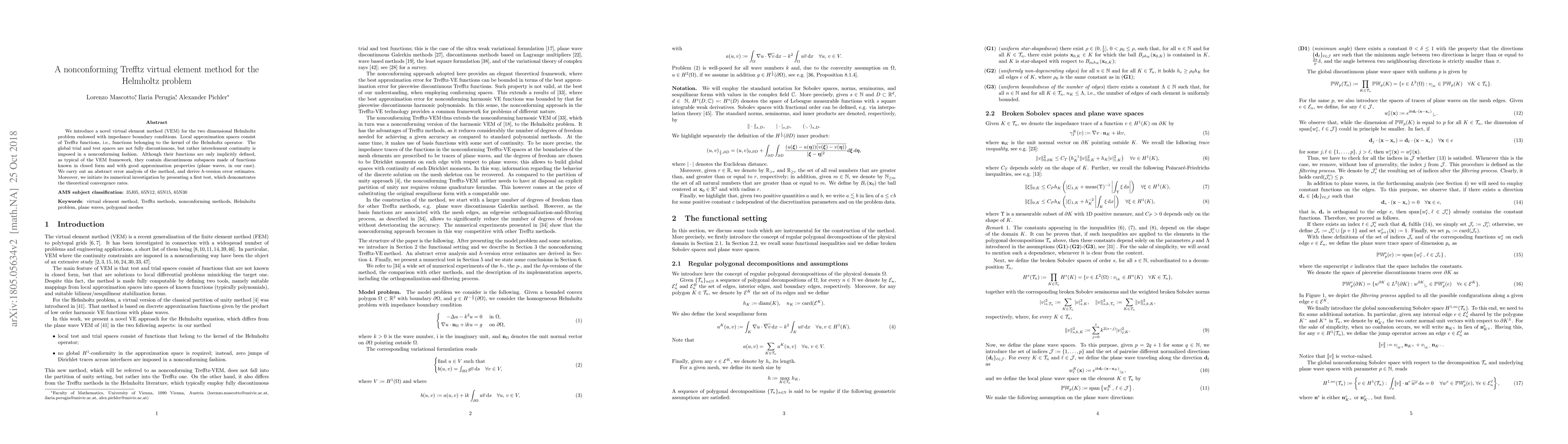 We introduce a novel virtual element method (VEM) for the two dimensional Helmholtz problem endowed with impedance boundary conditions. Local approximation spaces consist of Trefftz functions, i.e., functions belonging to the kernel of the Helmholtz operator. The global trial and test spaces are not fully discontinuous, but rather interelement continuity is imposed in a nonconforming fashion. Although their functions are only implicitly defined, as typical of the VEM framework, they contain discontinuous subspaces made of functions known in closed form and with good approximation properties (plane waves, in our case). We carry out an abstract error analysis of the method, and derive $h$-version error estimates. Moreover, we initiate its numerical investigation by presenting a first test, which demonstrates the theoretical convergence rates.