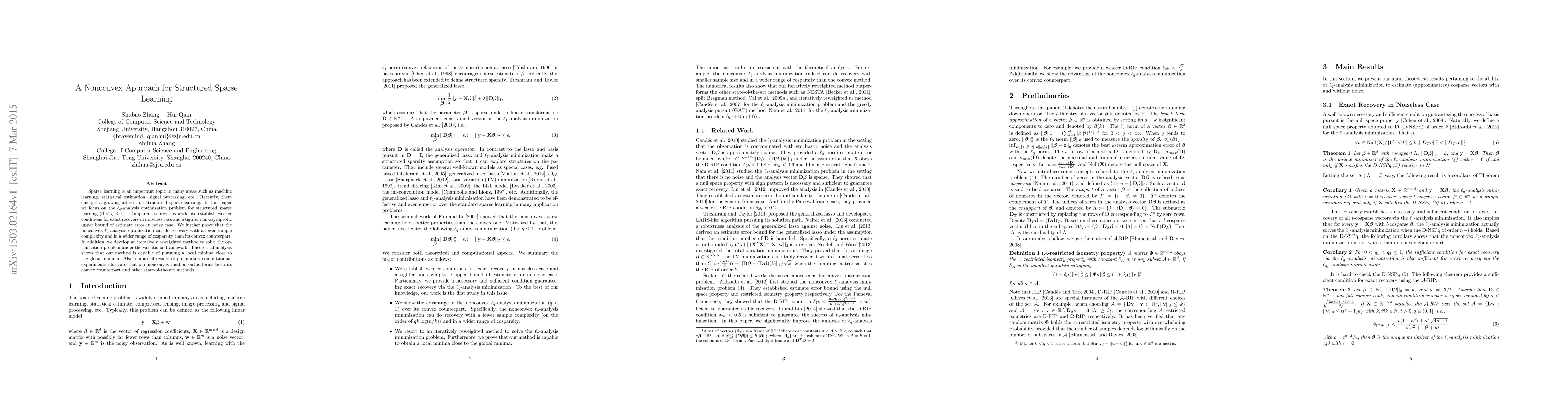 This paper proposes a nonconvex approach for structured sparse learning, establishing weaker conditions for exact recovery and tighter error bounds compared to convex methods. It demonstrates lower sample complexity and wider cosparsity range, and introduces an iteratively reweighted method that outperforms convex and other state-of-the-art methods in empirical tests.