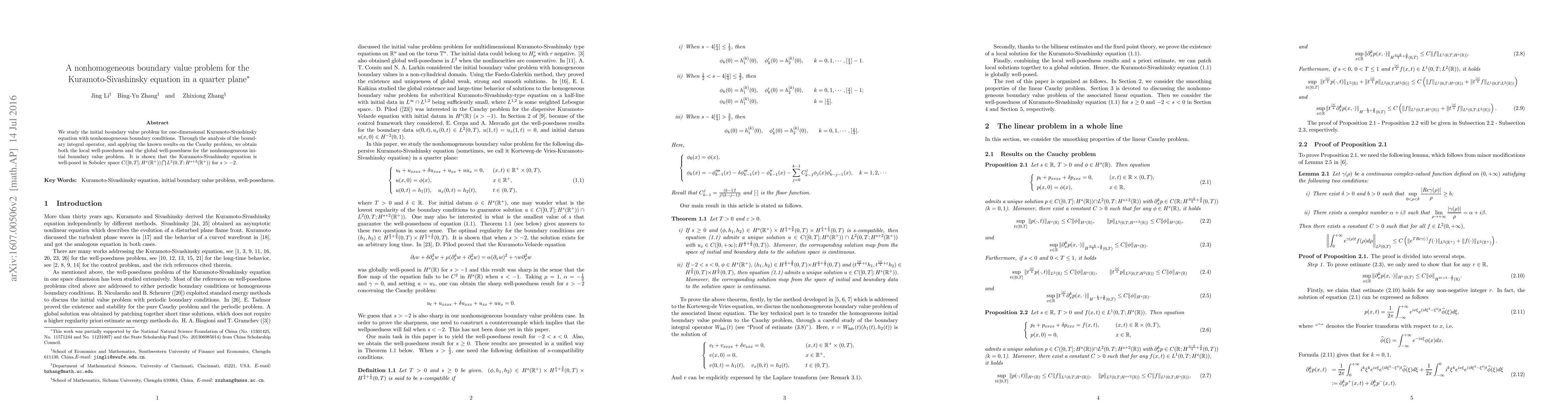This paper investigates the initial boundary value problem for the one-dimensional Kuramoto-Sivashinsky equation with nonhomogeneous boundary conditions. The authors establish local and global well-posedness using the boundary integral operator and Sobolev spaces, demonstrating the equation's well-posedness for $s > -2$.