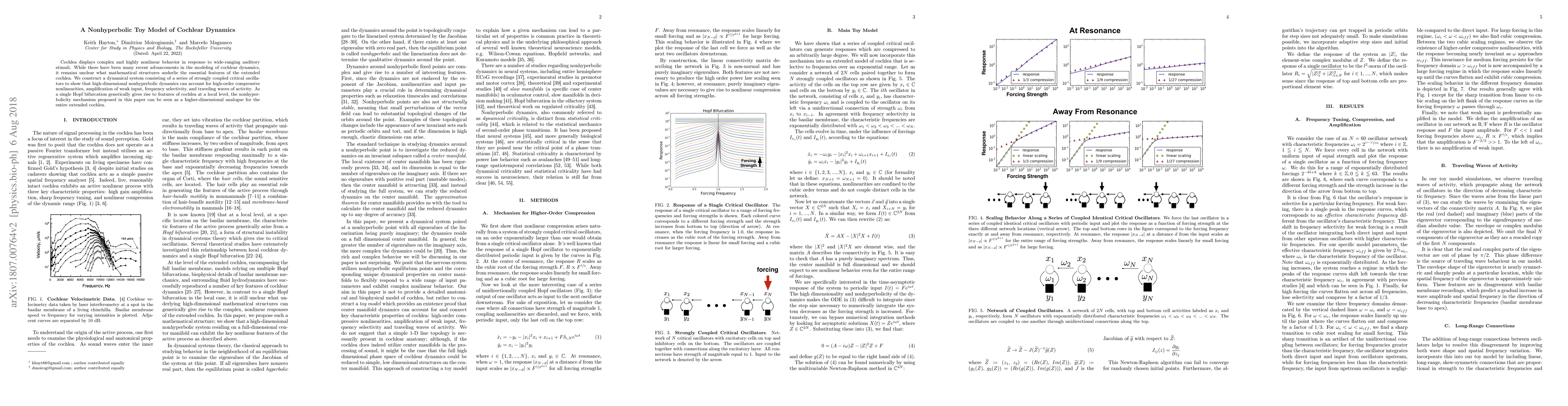This paper proposes a nonhyperbolic dynamical system of coupled critical oscillators to model cochlear dynamics, demonstrating how high-dimensional nonhyperbolicity can explain complex nonlinear behaviors such as compressive nonlinearities, amplification, frequency selectivity, and traveling waves, akin to the extended cochlea's response to auditory stimuli.