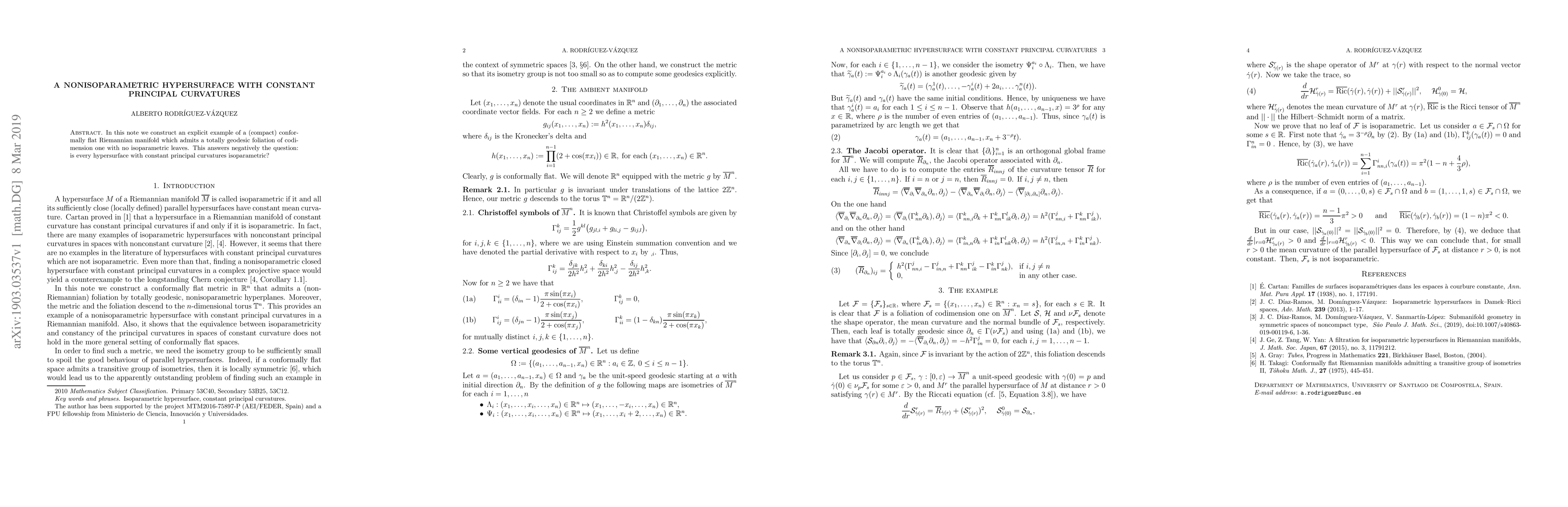 In this note we construct an explicit example of a (compact) conformally flat Riemannian manifold which admits a totally geodesic foliation of codimension one with no isoparametric leaves. This answers negatively the question: is every hypersurface with constant principal curvatures isoparametric?