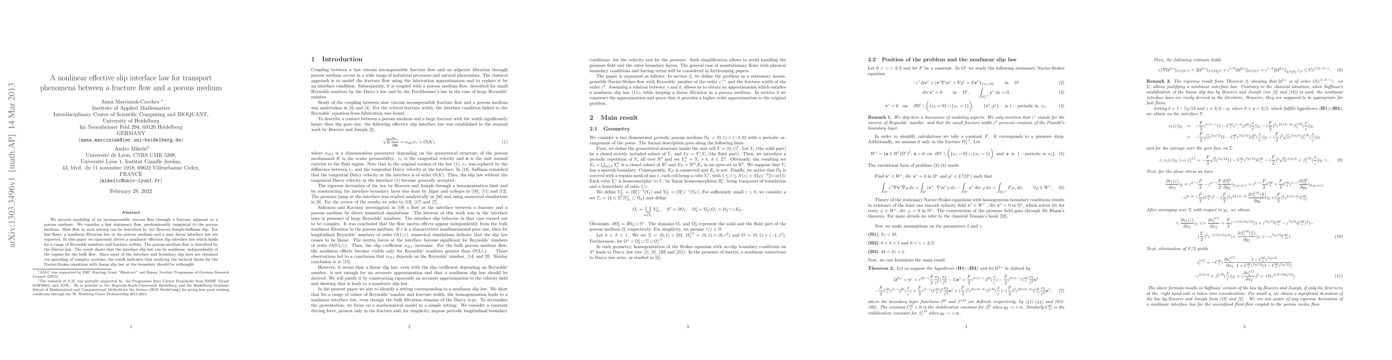 This paper develops a quadratic effective slip interface law for modeling fast, tangential incompressible viscous flow between a fracture and a porous medium, showing that the interface slip can be nonlinear regardless of the bulk flow regime. It challenges the conventional linear slip laws derived from upscaling, suggesting a reevaluation of inviscid limits for the Navier-Stokes equations.