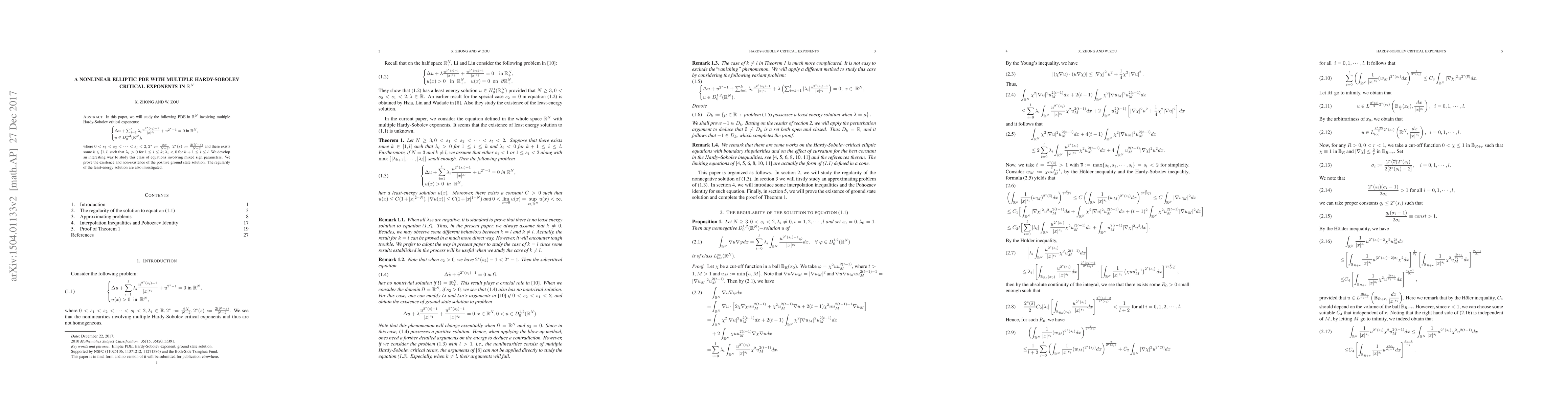 \frac{u^{2^*(s_i)-1}}{|x|^{s_i}}+u^{2^*-1}=0\;\hbox{in}\;\mathbb{R}^N, u\in