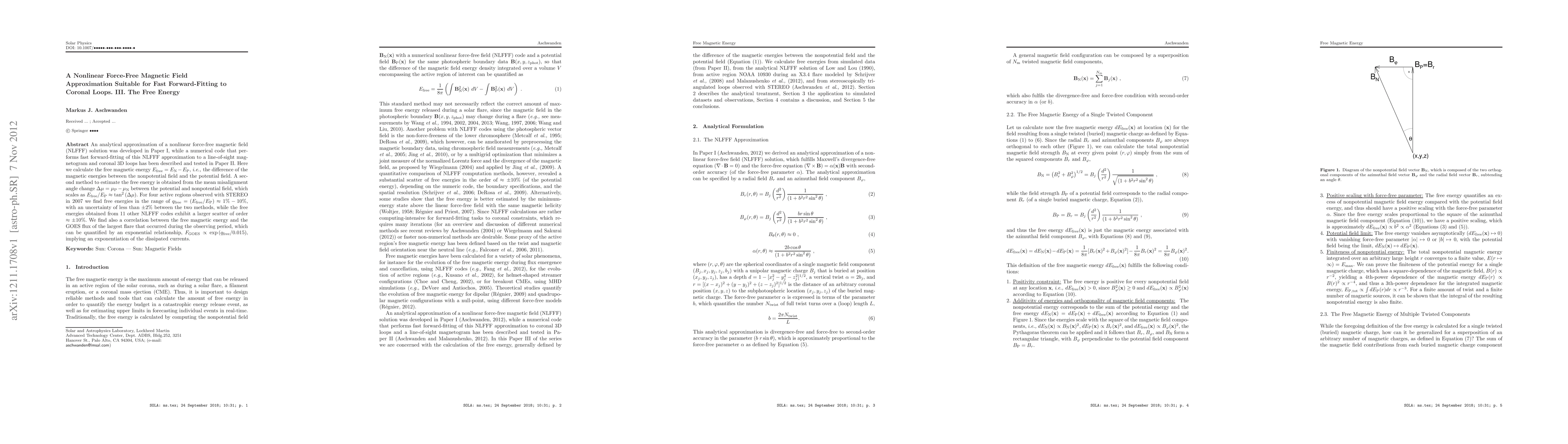 This paper presents a method to calculate free magnetic energy in solar active regions using a nonlinear force-free magnetic field approximation. The free energy is estimated via two methods, showing agreement within ±2%. Results indicate free energies between 1%-10% of total energy, with an exponential relationship found between free energy and GOES flux of large flares.