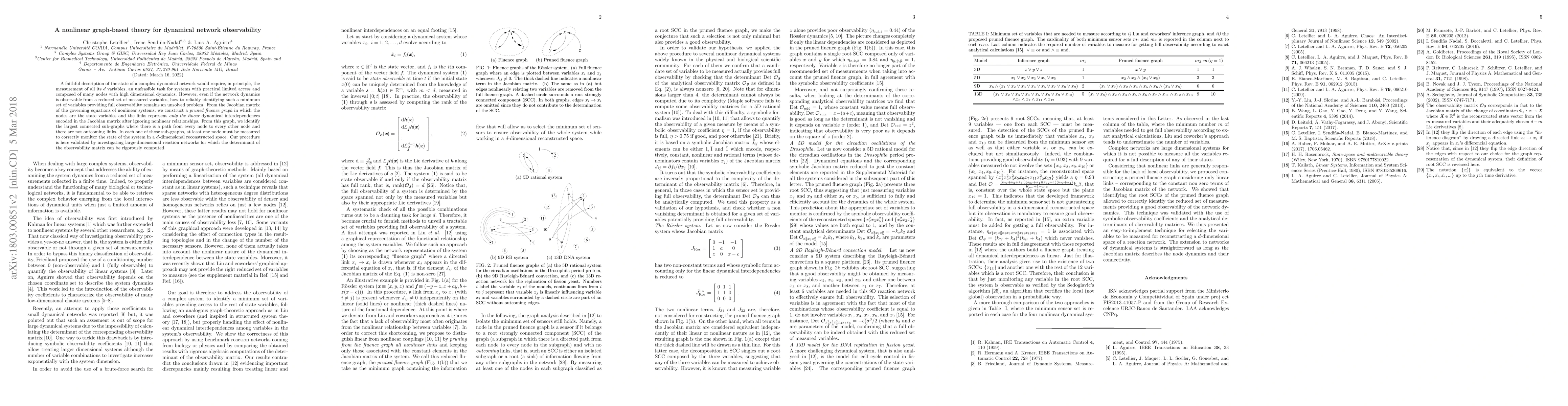 A faithful description of the state of a complex dynamical network would require, in principle, the measurement of all its $d$ variables, an infeasible task for systems with practical limited access and composed of many nodes with high dimensional dynamics. However, even if the network dynamics is observable from a reduced set of measured variables, how to reliably identifying such a minimum set of variables providing full observability remains an unsolved problem. From the Jacobian matrix of the governing equations of nonlinear systems, we construct a {\it pruned fluence graph} in which the nodes are the state variables and the links represent {\it only the linear} dynamical interdependences encoded in the Jacobian matrix after ignoring nonlinear relationships. From this graph, we identify the largest connected sub-graphs where there is a path from every node to every other node and there are not outcoming links. In each one of those sub-graphs, at least one node must be measured to correctly monitor the state of the system in a $d$-dimensional reconstructed space. Our procedure is here validated by investigating large-dimensional reaction networks for which the determinant of the observability matrix can be rigorously computed.