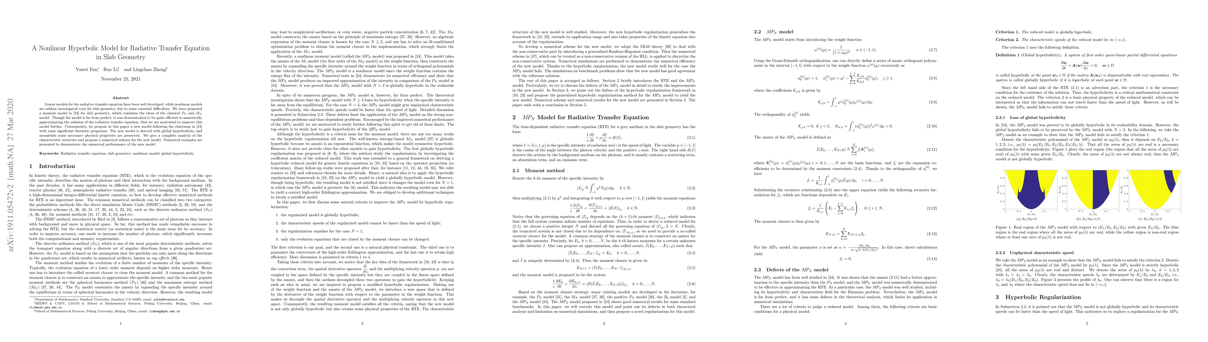 A new nonlinear hyperbolic model for the radiative transfer equation is proposed for slab geometry, offering improved efficiency and preserving key physical properties.